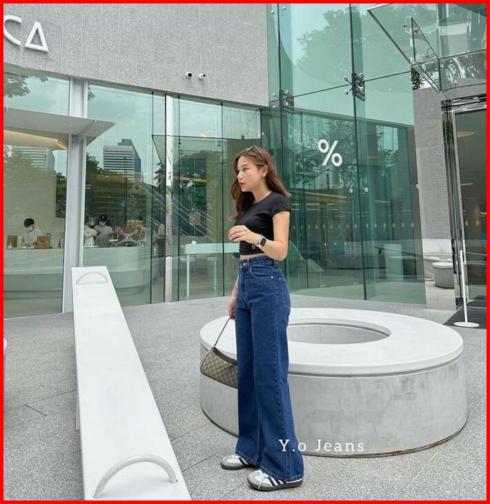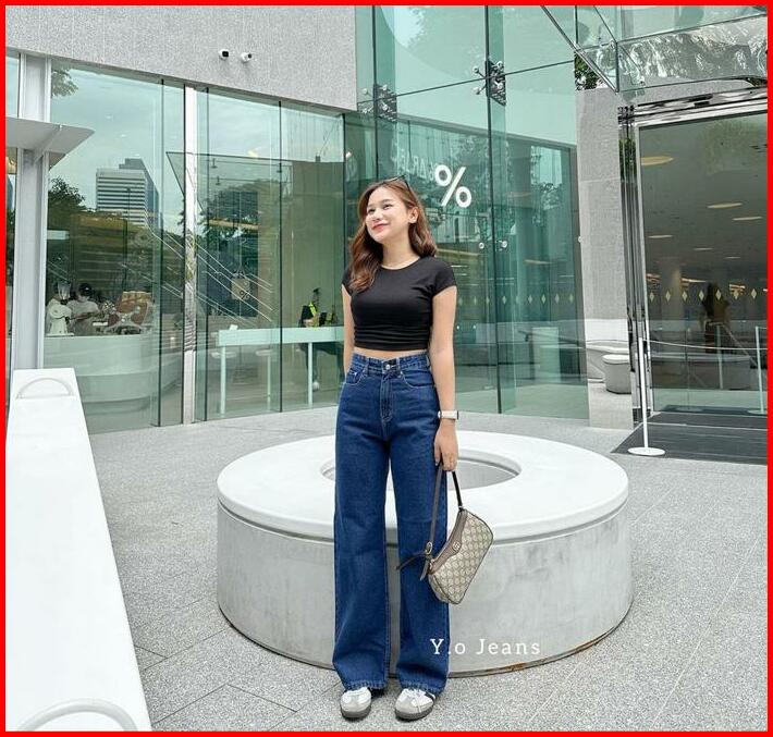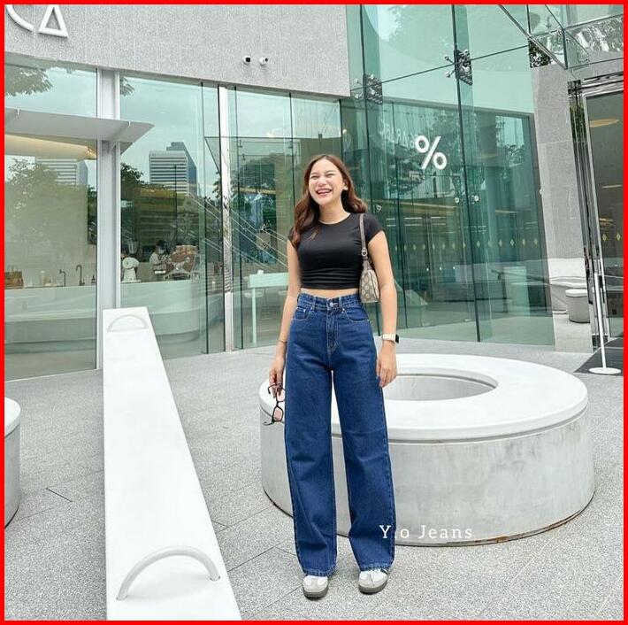 Celana Jeans Haigwaist Kulot Loose Overlong Biru Tua Panjang Wanita Cutbray
