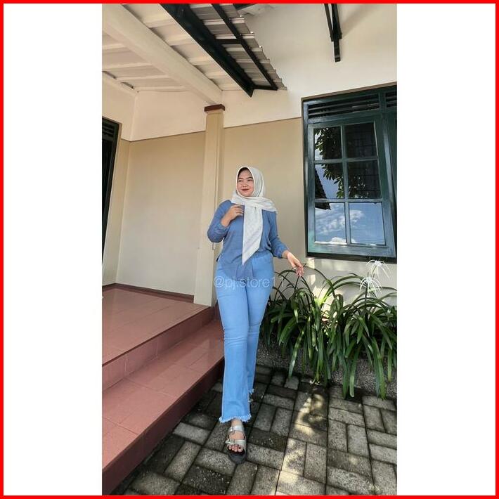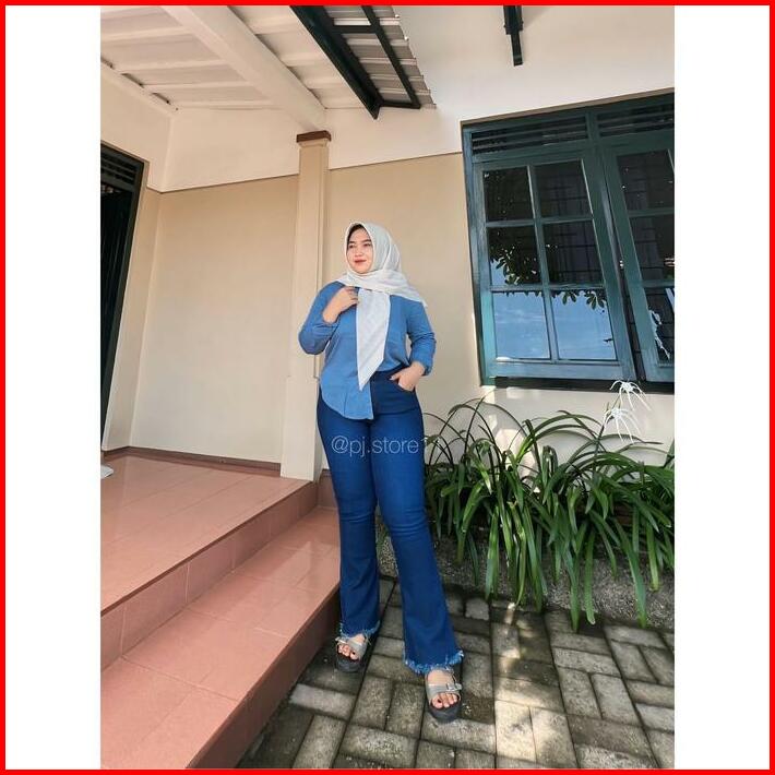 Playjeans Celana Cutbray Wanita Jumbo Rawis Celana Jeans Cutbray Bigsize