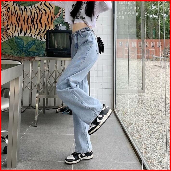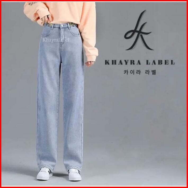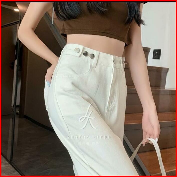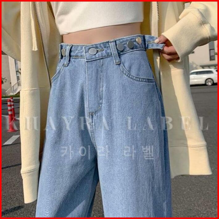 Celana Highwaist Jeans Panjang Wanita Pinggang Kancing Yang Dapat Disesuaikan