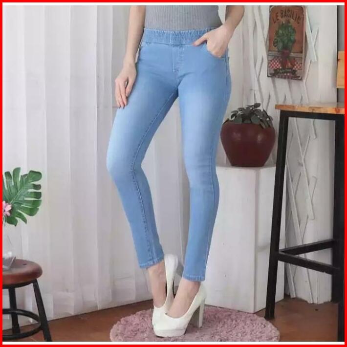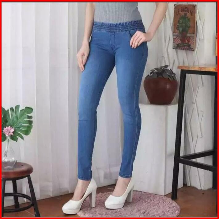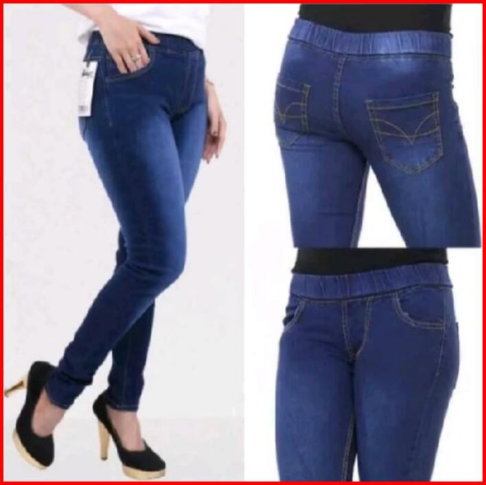 Celana Legging Jeans Karet Pinggang Slimfit Wanita