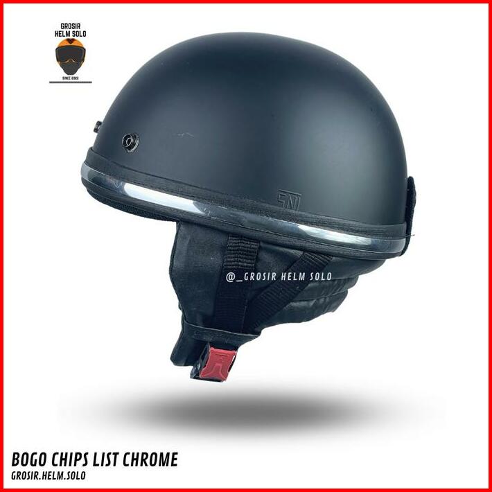 Helm Bogo Chips Retro Dewasa List Crom Polos Tanpa Kaca Terbaru Sni