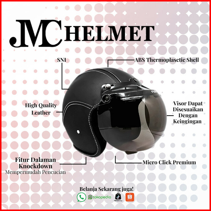 Helm Bogo Retro Kaca Bogo Original Full Leather Black Sni