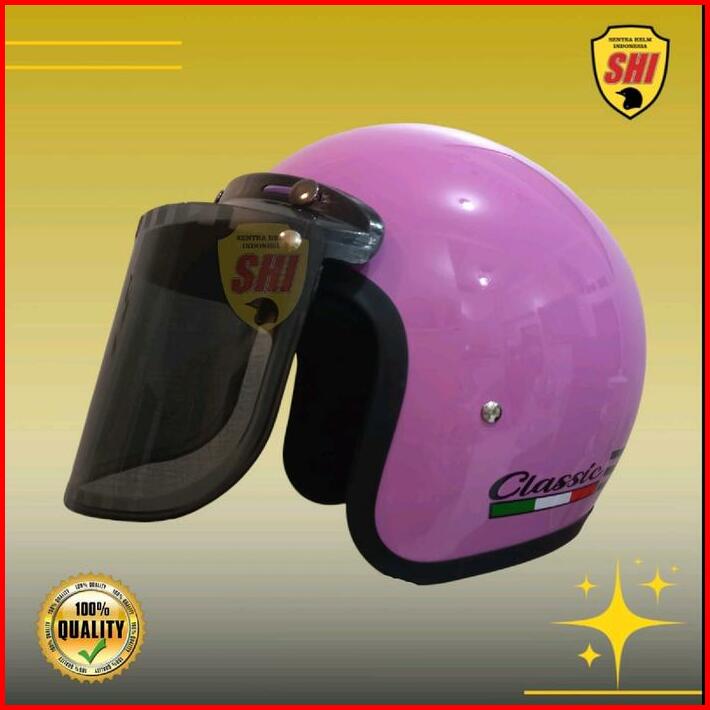Helm Bogo Classic Garis Tiga Dewasa Sni Kaca Motorcycle