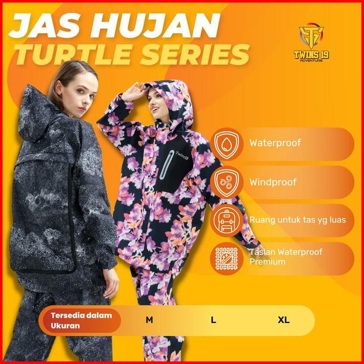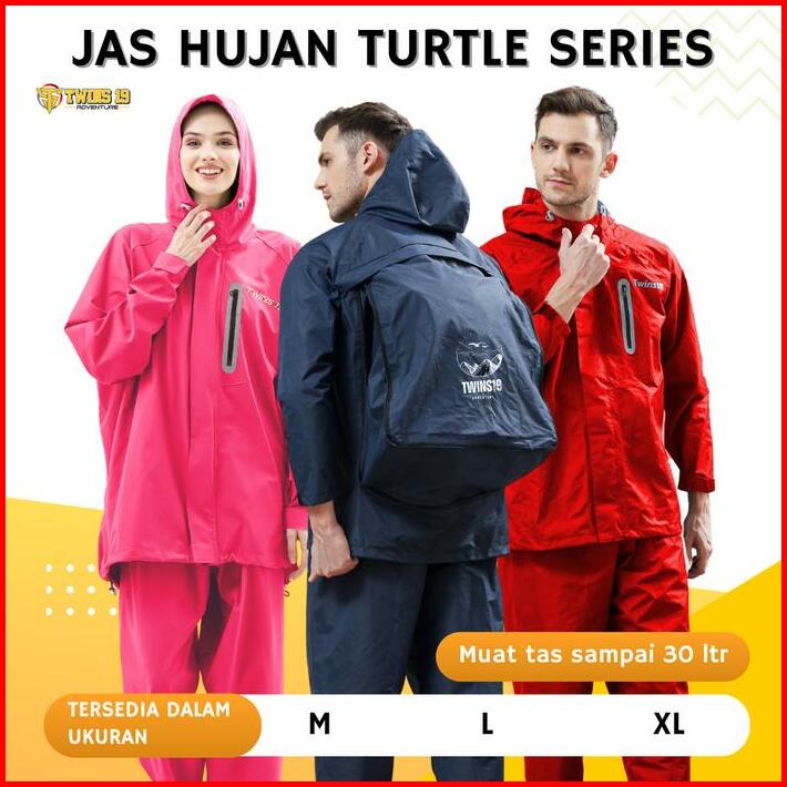 Jas Hujan Turtle Backpack Series Twins19 Mantel Mantol Cewek Cowok Pria Wanita Raincoat Setelan Waterproof Zipper