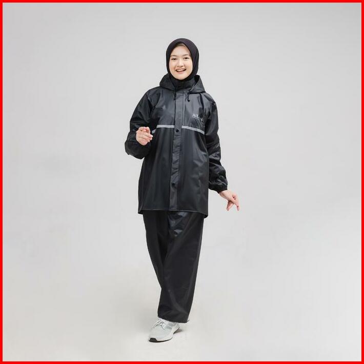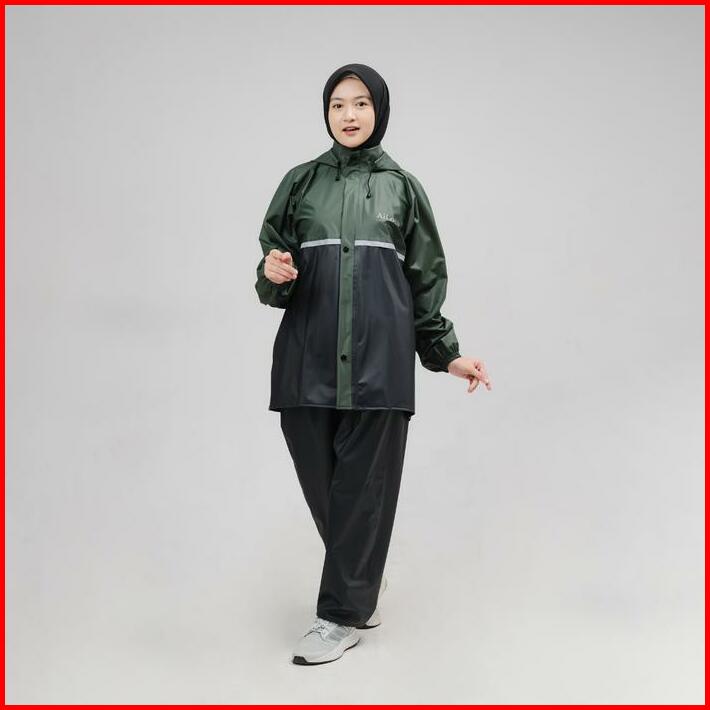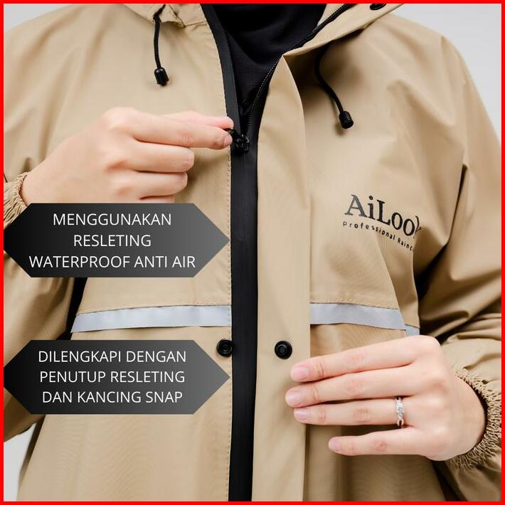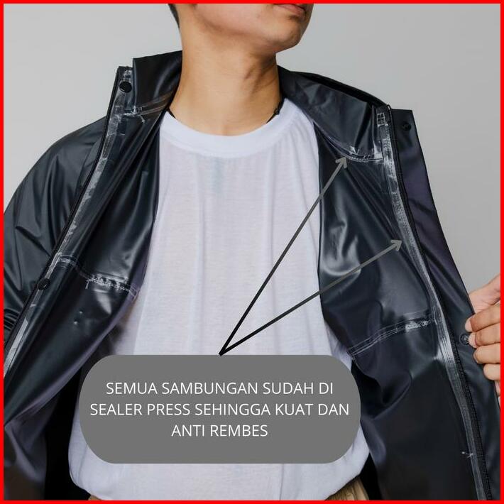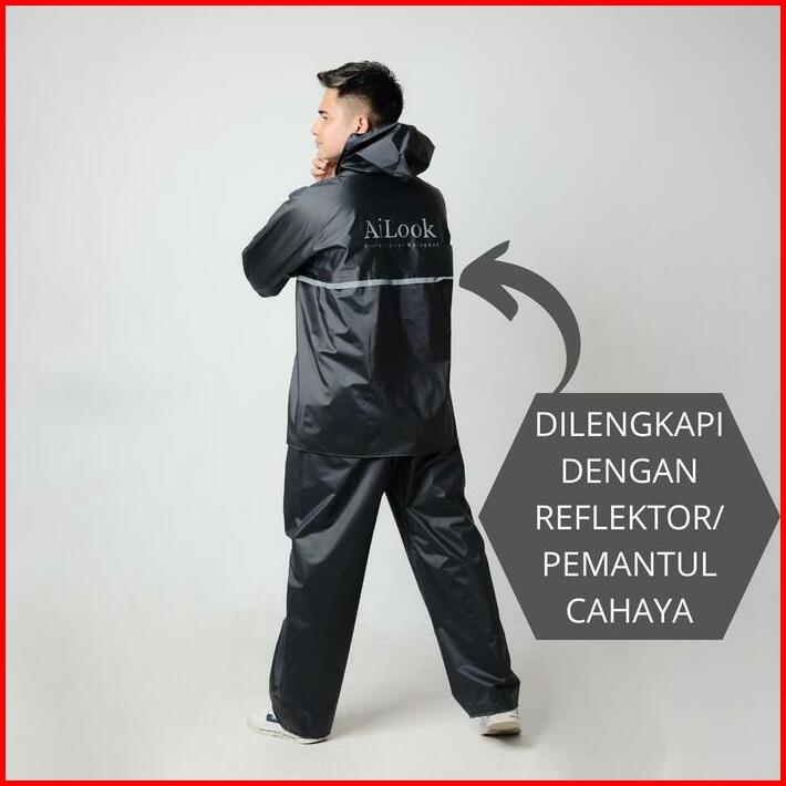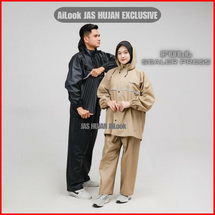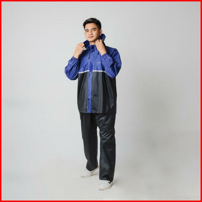 Ailook Jas Hujan Raincoat Full Seal Press Anti Rembes Setelan Pria Wanita Bahan Pvc Karet Tebal Kuat Elastis Biru Cream