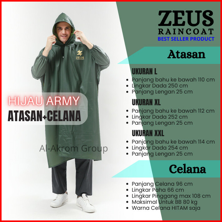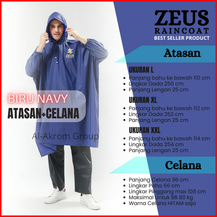 Jas Hujan Mantel Ponco Lengan Jumbo Merk Zeus Bahan Pvc 0 25 Tebal