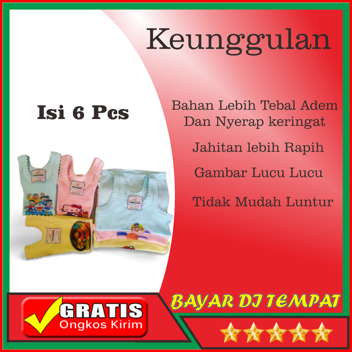 Gbb 6 Pcs Pakaian Baju Kaos Dalam Anak Dan Bayi Laki Laki Sablon