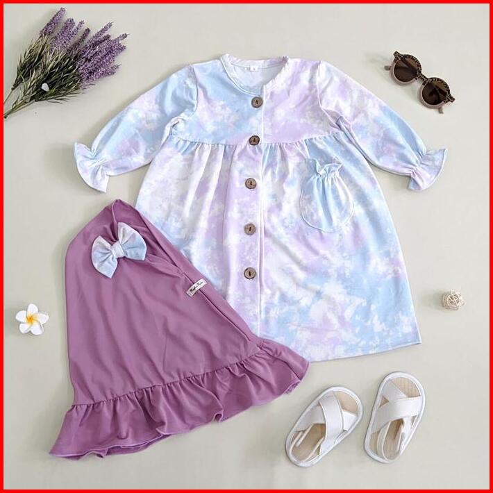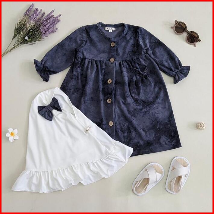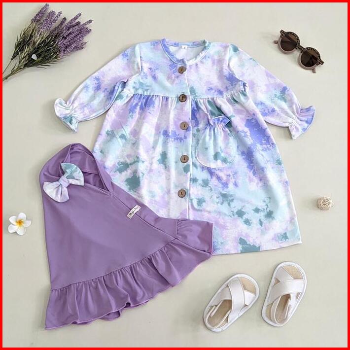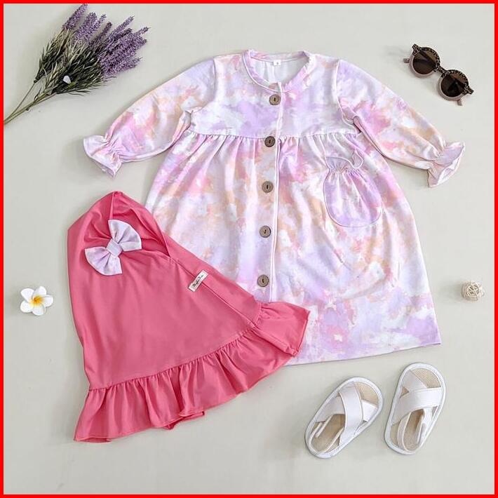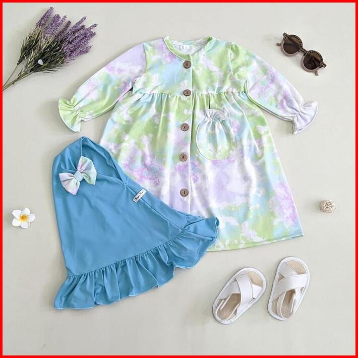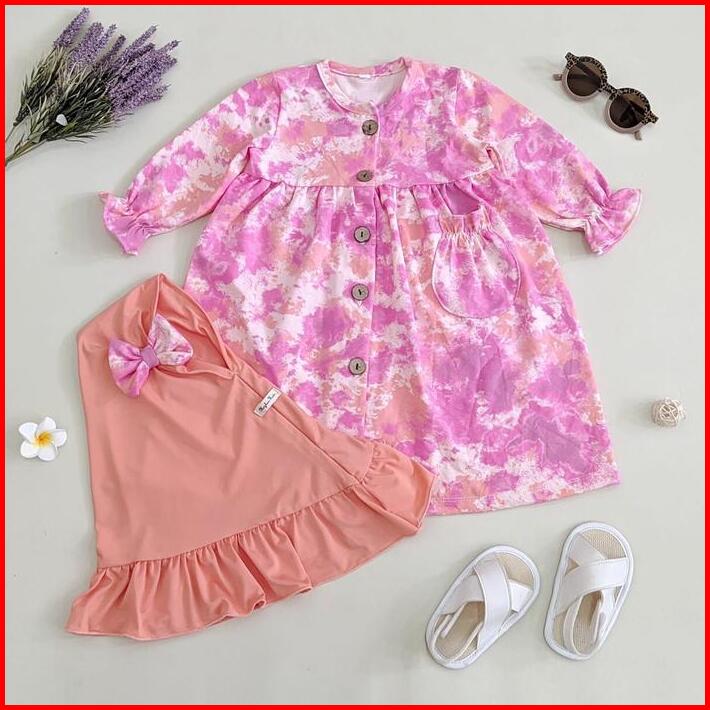 Satu Set Gamis Dan Hijab Anak Bayi Usia 0 1 2 3 4 5 6 7 Bahan Katun Cotton Spandek Premium Motif Abstrak
