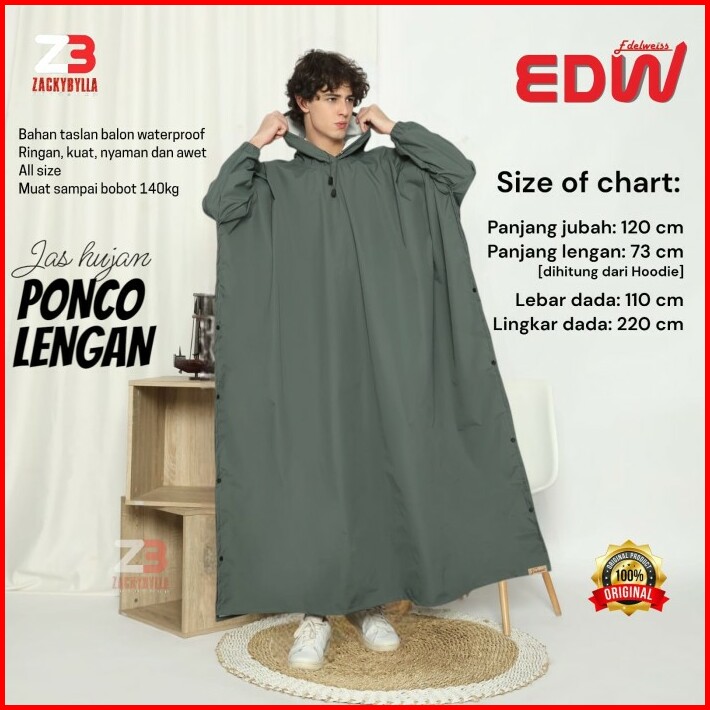 Jas Hujan Edelweiss Ponco Poncho Kalong Batman Lengan Premium