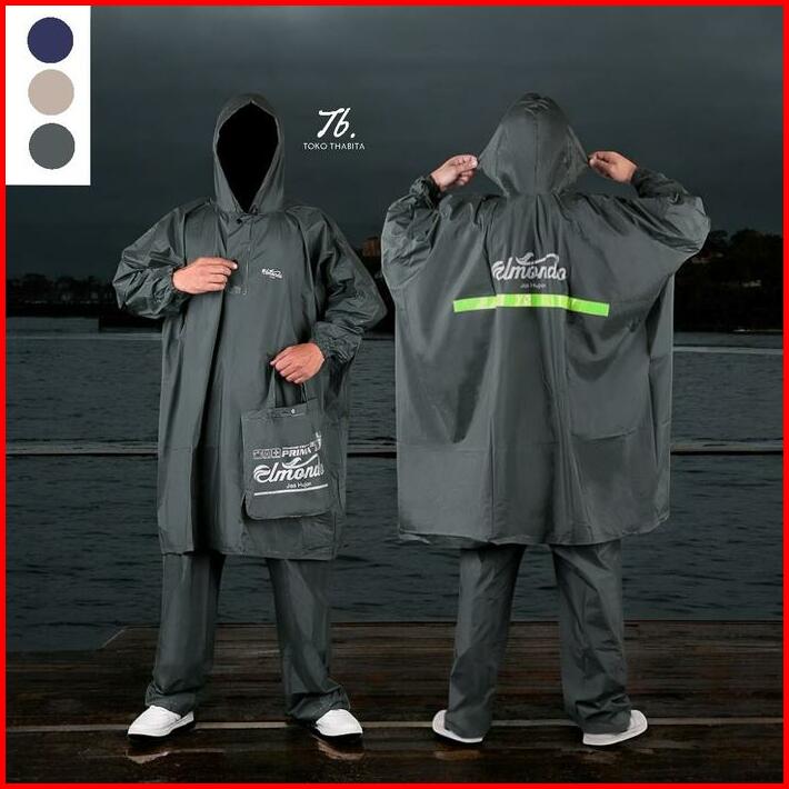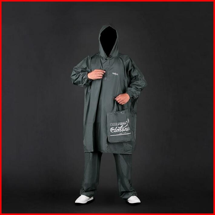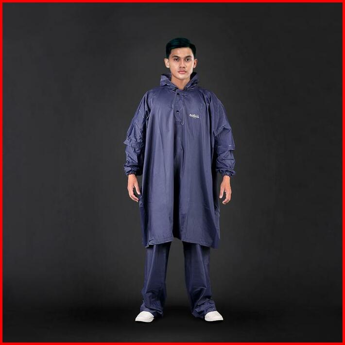 Jas Hujan Ponco Lengan Celana Ukuran Besar Elmondo Rain Coat Navy Hijau Cream