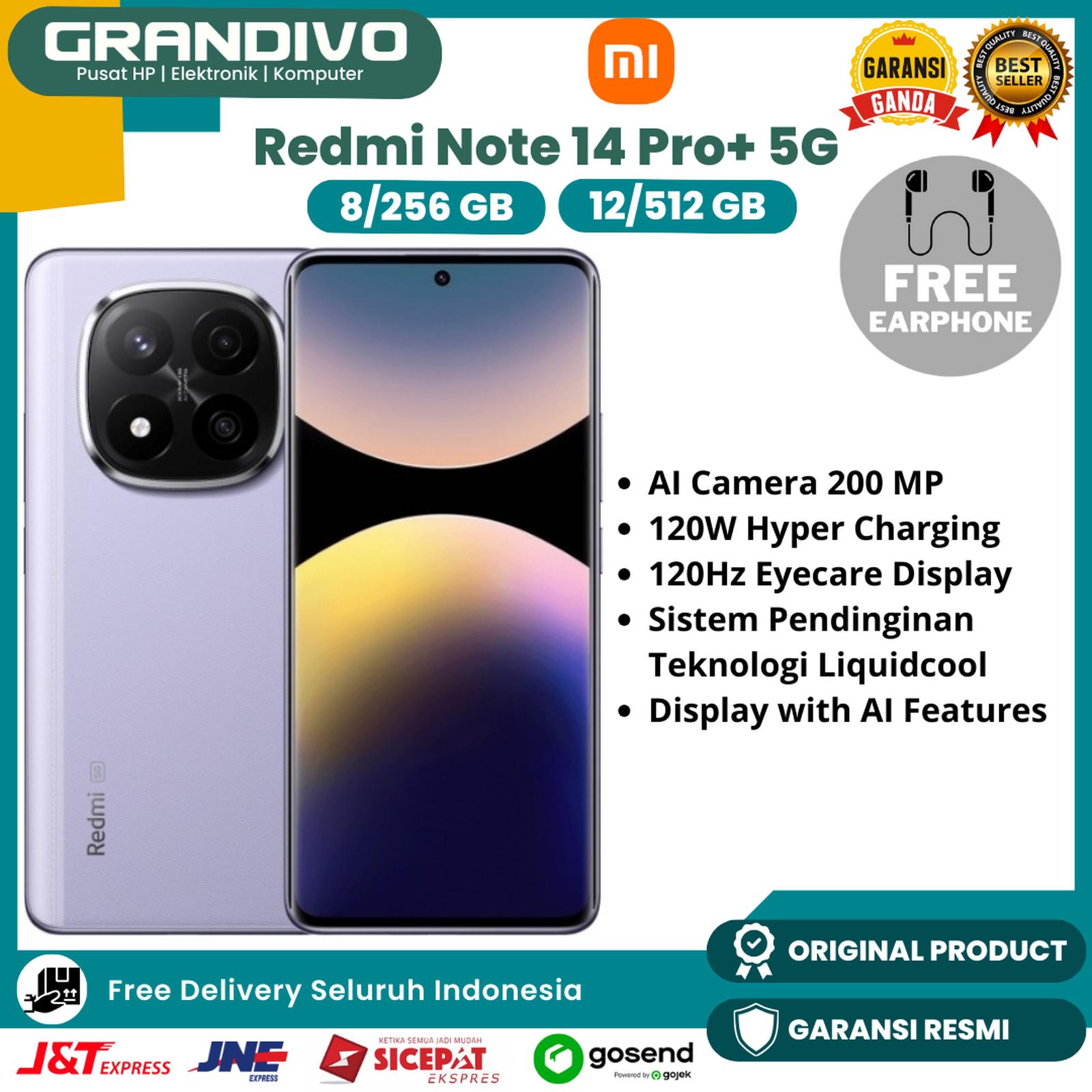 Xiaomi Redmi Note 14 Pro+ Plus 5G 200 MP AI Camera OIS HyperCharge 5110mAh NFC - Garansi Resmi - Grandivo