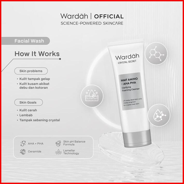 New Wardah Crystal Secret Nmf Amino Aha Pha Clarifying Foaming Cleanser 100 Ml