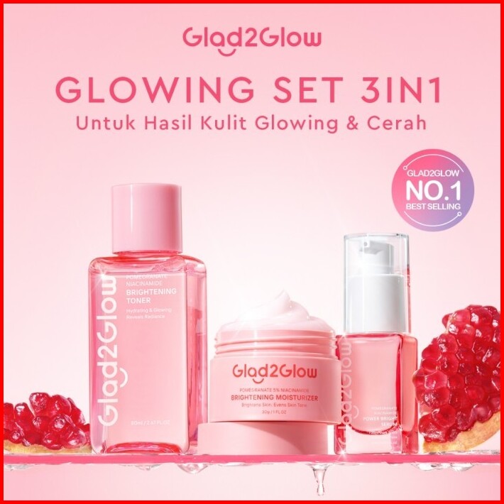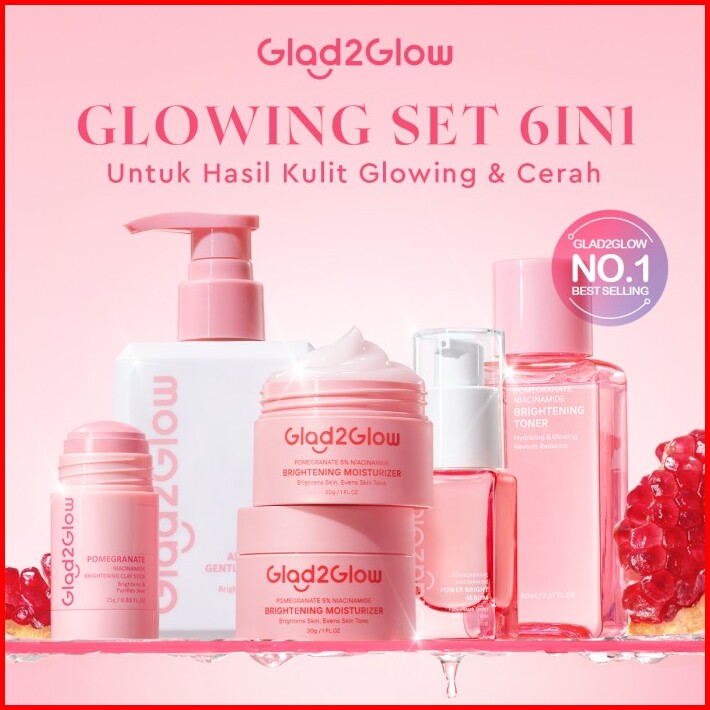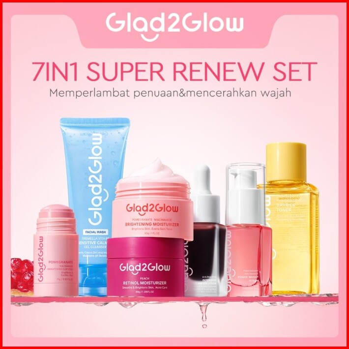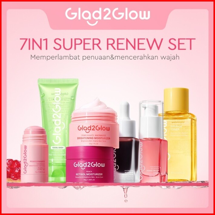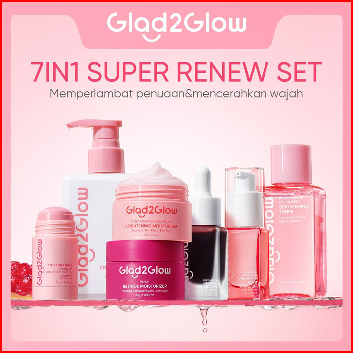 Paket Terbaik Putih Wajahglad2glow Renew Bundle All In 1 7in1-brightening Toner Brightening Moisturizer Cleanser Brighte