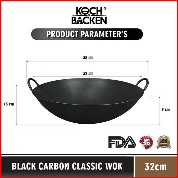Koch Backen Black Carbon Wok Clasic Preseasoned 32cm