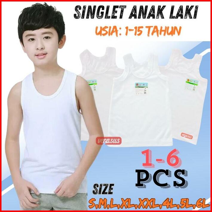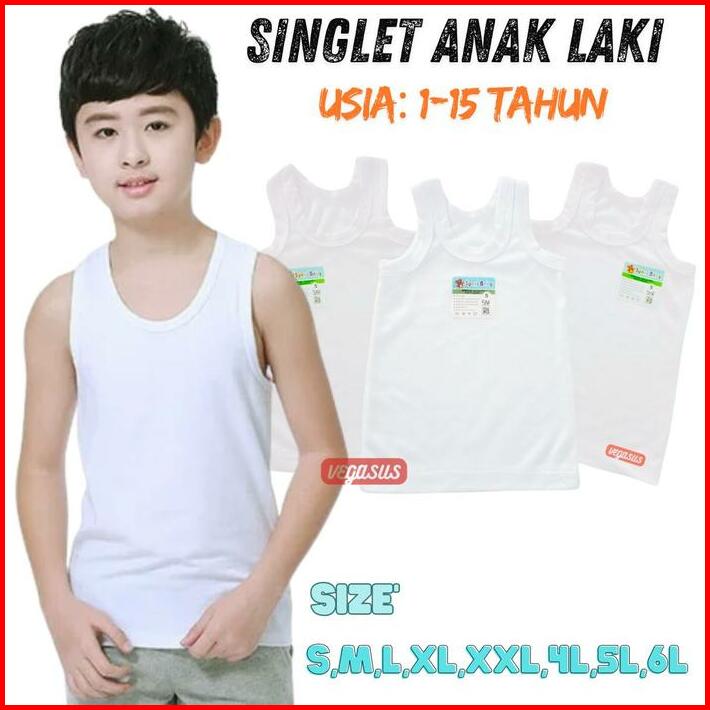 Singlet Kaos Dalam Salur Anak Laki Usia 1-15tahun-kutang Syani S M L Xl 3l 4l 5l 6l Katun Bayi Perempuan Cewek Putih Ana