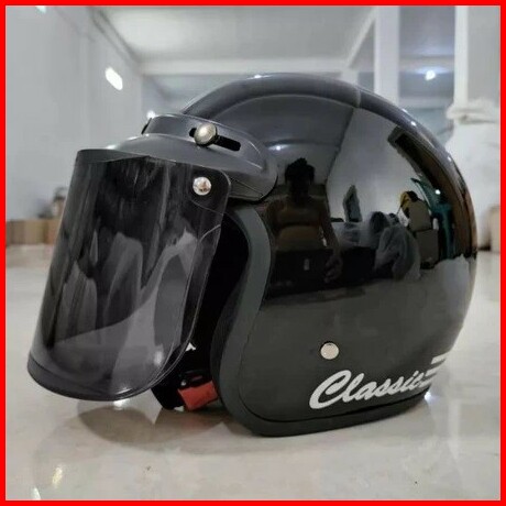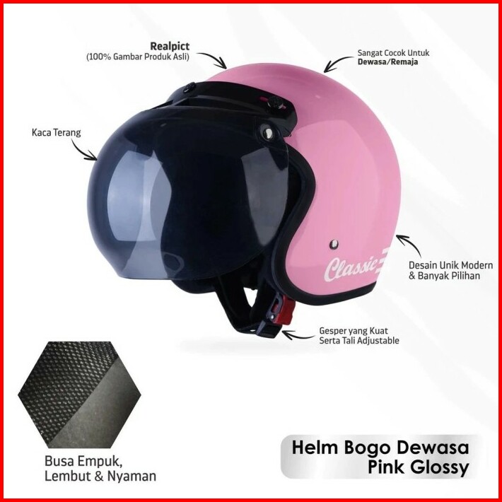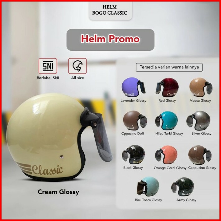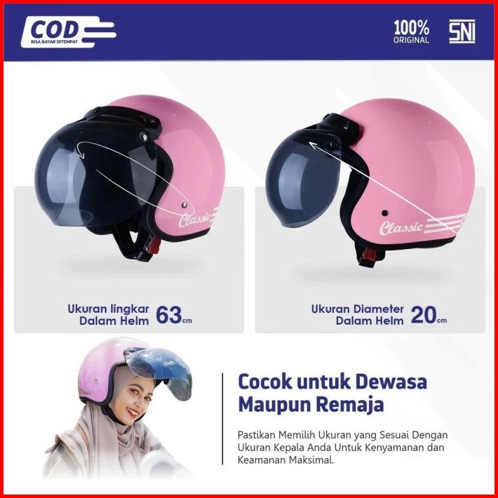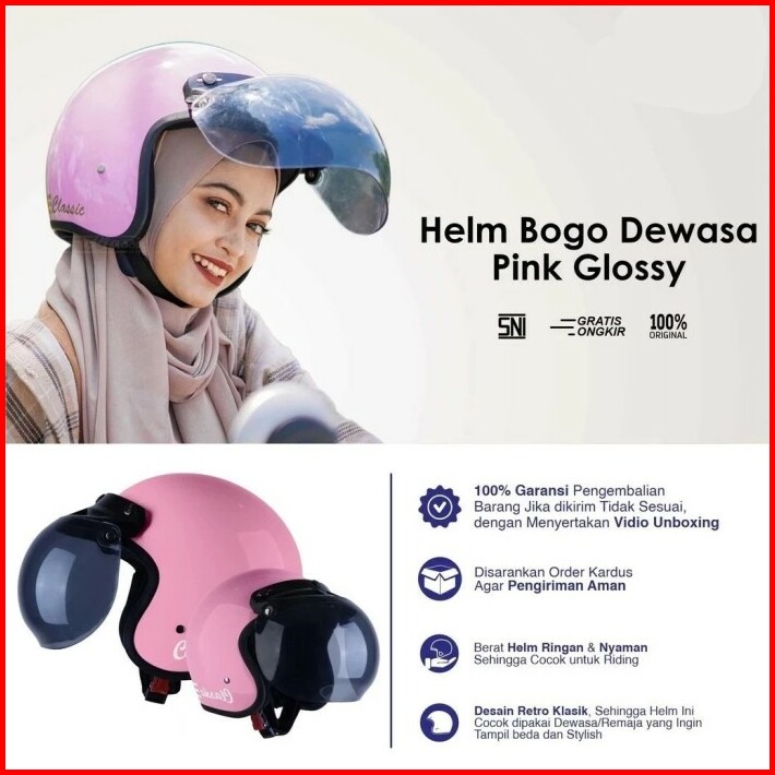 Helm Pria Wanita Dewasa Hijab Bogo Classic Garis Oren Glossy Kaca