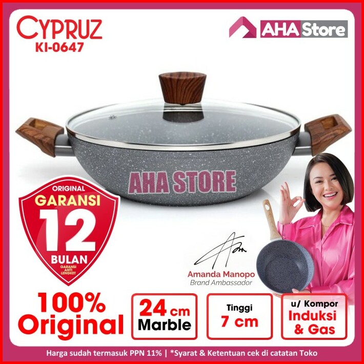 Cypruz Fry Pan Wok Penggorengan Wajan Kuali Marble 28 Cm Ki-0649
