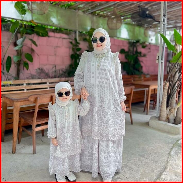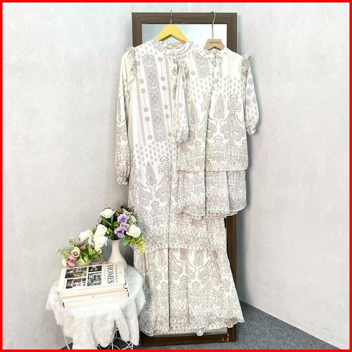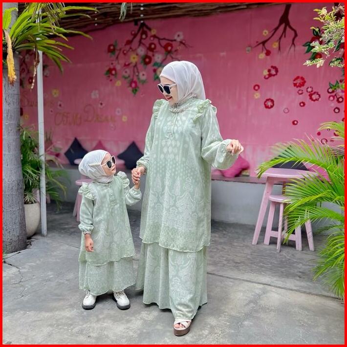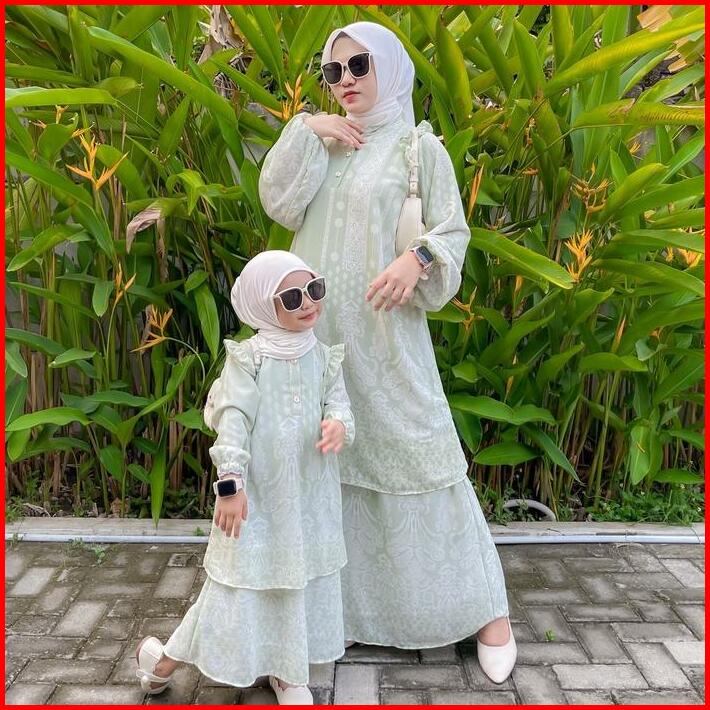 Mimmi.idkimberly Dress Mommy Dan Baby Bahan Ceruty Babydoll Full Furing Kancing Depan Busui Gamis Anak Usia 2-9tahun Baj