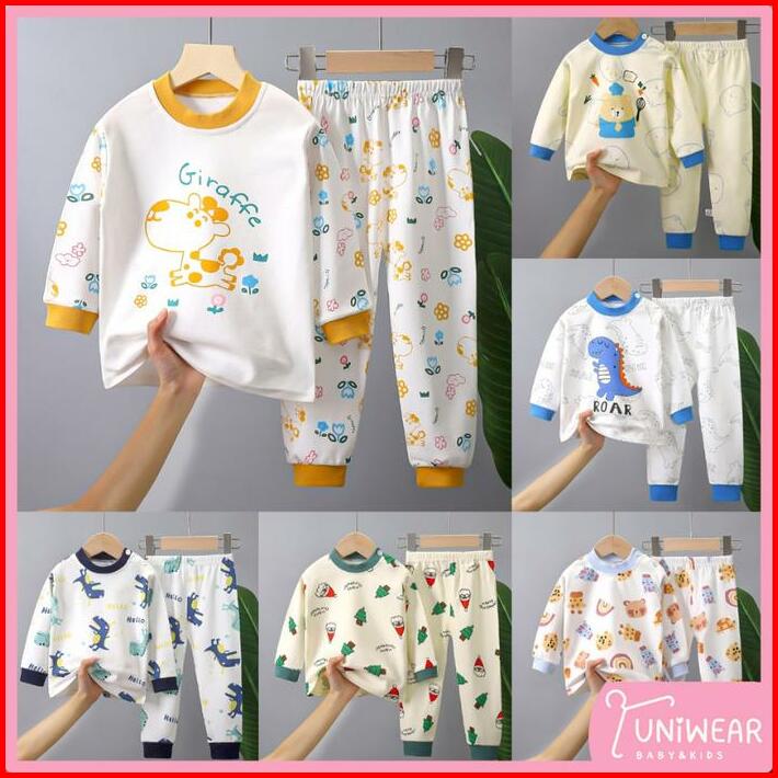 Uniwear Baju Tidur Anak Setelan Piyama Bayi Set Lengan Panjang Bahan Lembut Piyama Murah