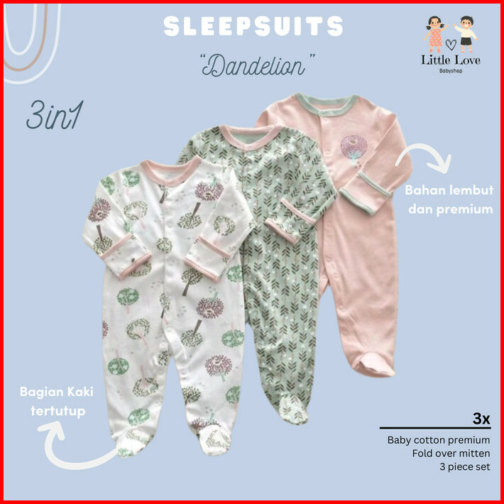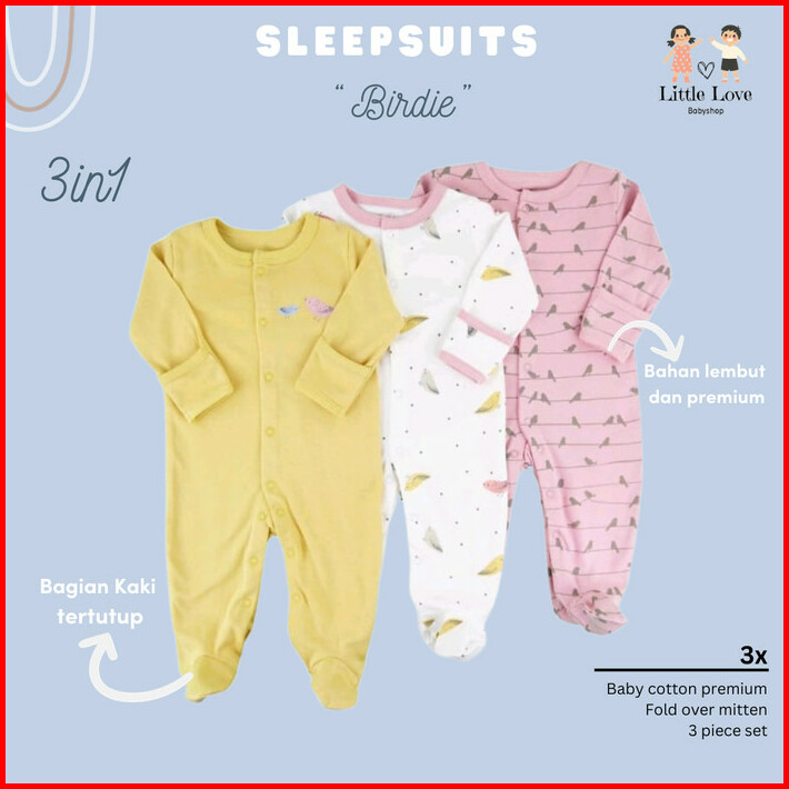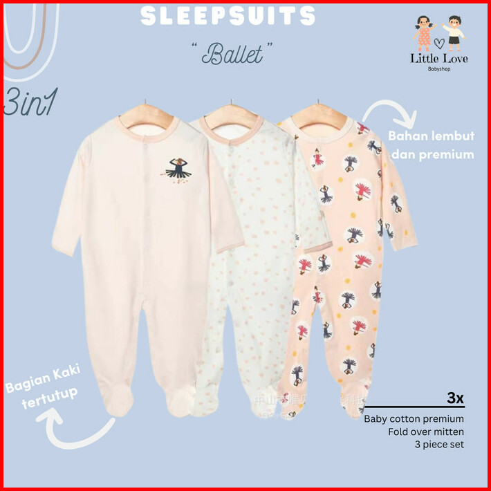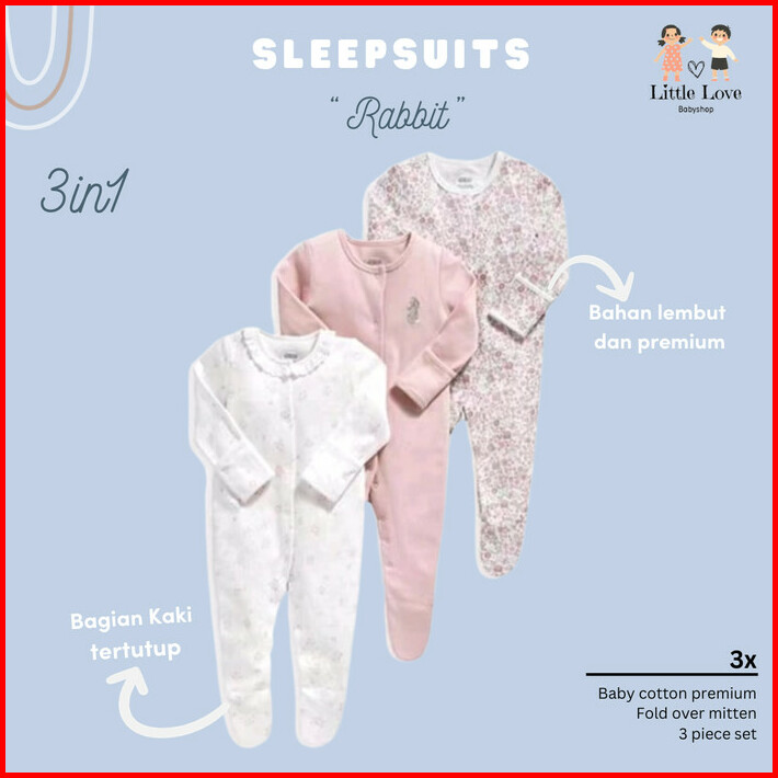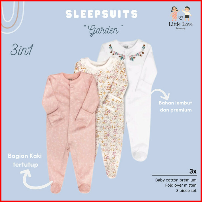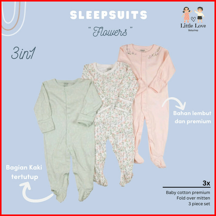 Sleepsuit Baju Tidur Mamas Papas 3in1 Piyama Bayi Premium Perempuan