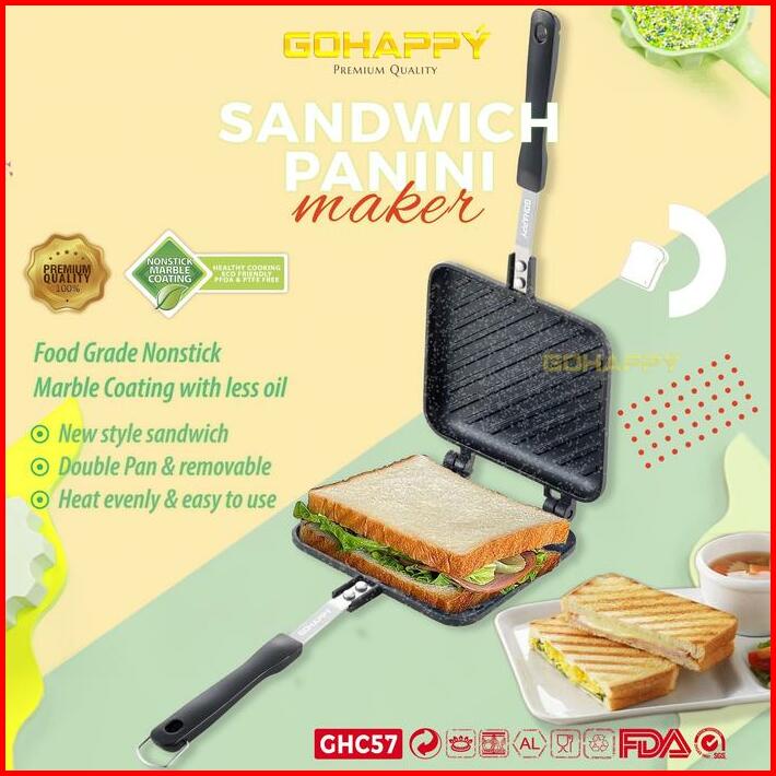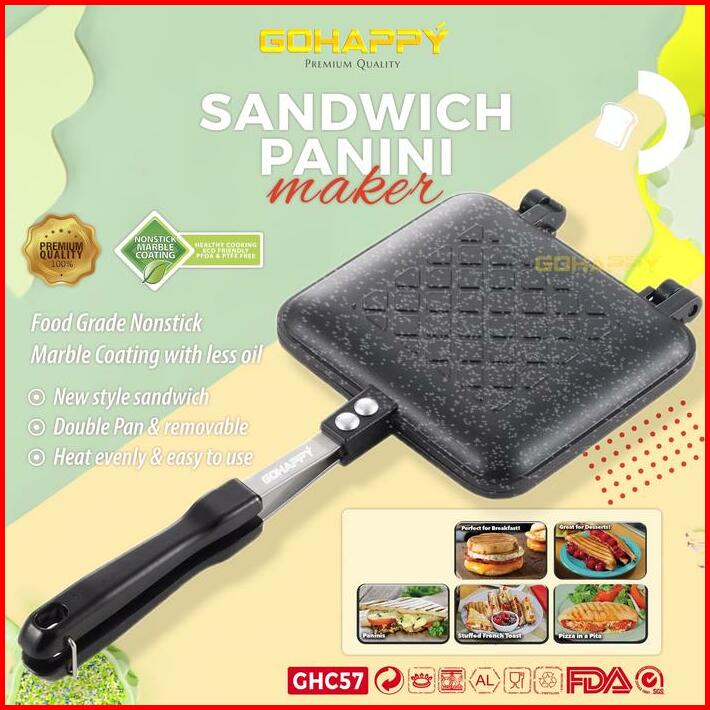 Gohappy Panci Pembuat Sandwich Panini Maker Alat Cetakan Kue Roti Panggang Grill Pan Steak Ayam Daging Anti Lengket Popu