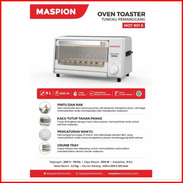 Oven Toaster Pemanggang Roti Alat Panggang Maspion Mot 500