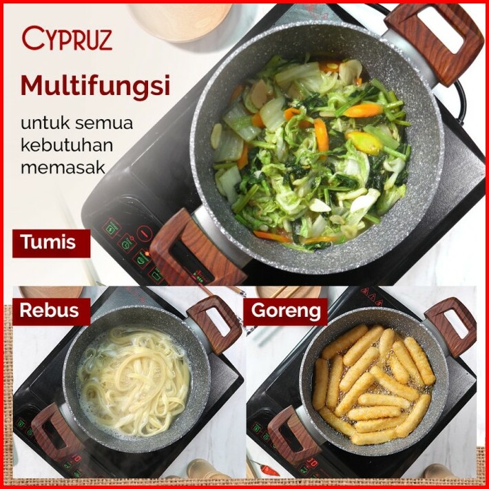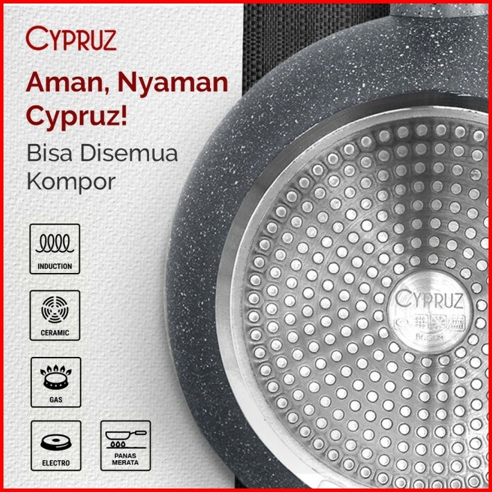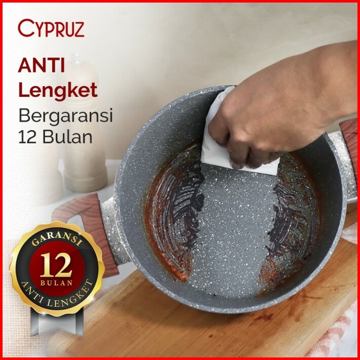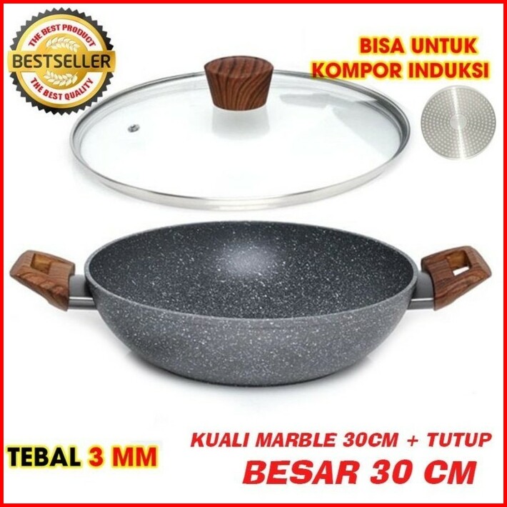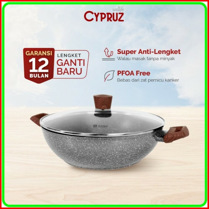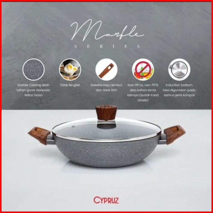 Cypruz Kuali Marble Series Anti Lengket 30cm Kl-0645 Tutup Lid Kaca