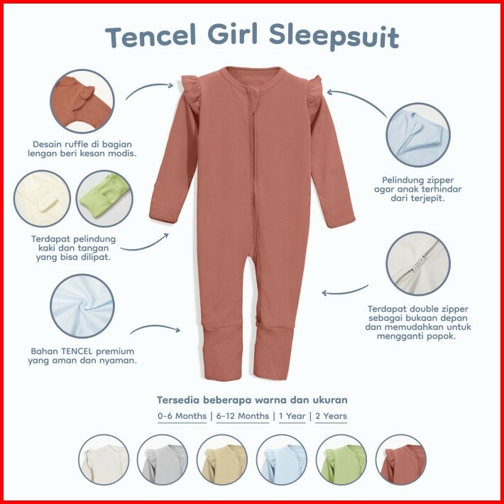 Tencel Sleepsuit Girl Nice Kids Jumper Baby Baju Tidur Bayi Perempuan 0 Bulan-2 Tahun