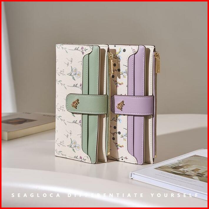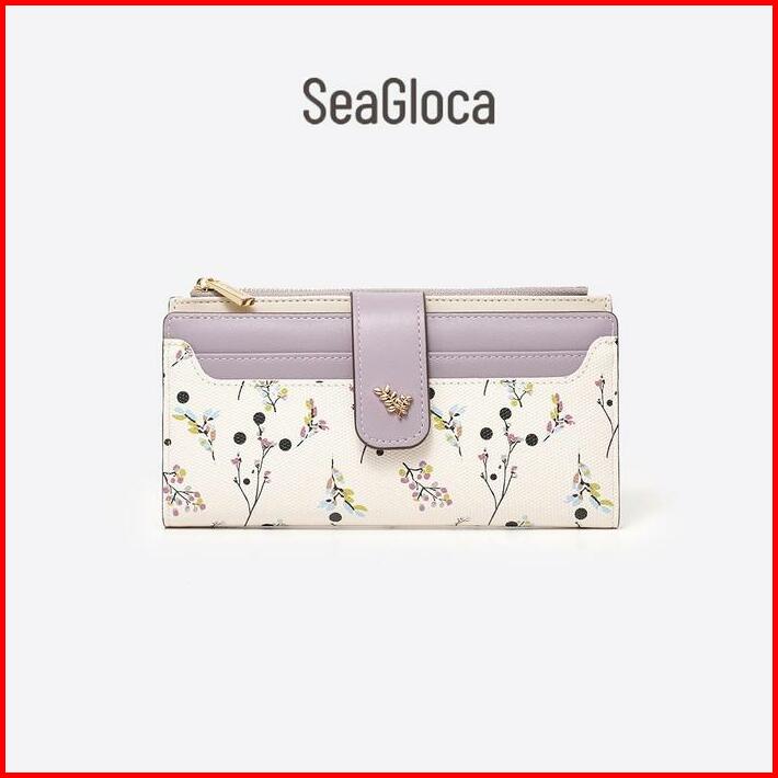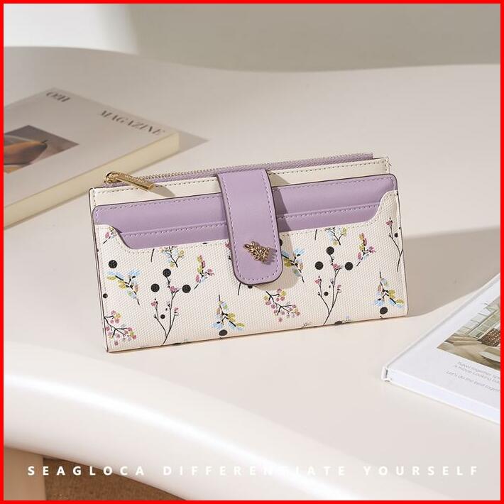 Seagloca Dompet Panjang Ritsleting Klasik Sederhana Wanita Kulit Pola Bunga No.2414