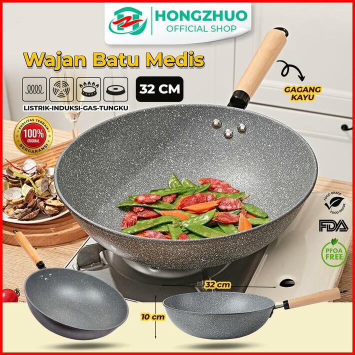 Tifale By Hz Wajan Fry Pan Maifan Stone Yy2201 Anti Lengket 32cm Wajan Penggorengan High Quality Batu Medis Besi Kayu Ke