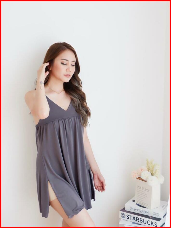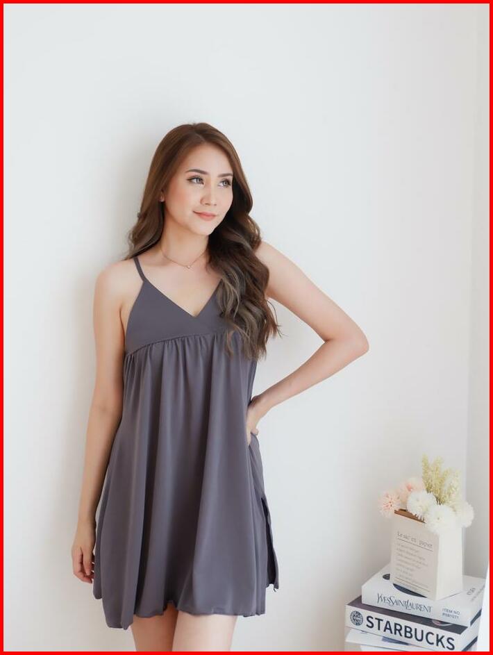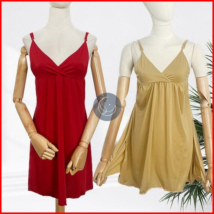 Sela Babydoll Sleepwear S-7xl Big Size Nightgown Lingerie Fit Nyaman M225 Panjang Silk Tidur Soft Basic Dress Dewasa
