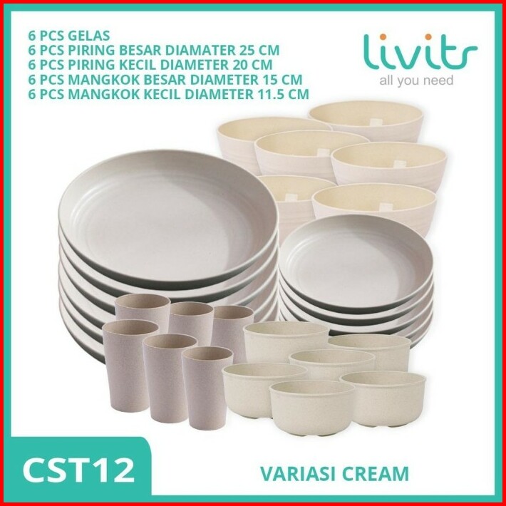 Set 30 Pcs Alat Makan 6 Pcs Piring Besar 6 Pcs Piring Kecil 6 Pcs Cangkir Minum 6 Pcs Mangkok Besar 6 Pcs Mangkok Kecil