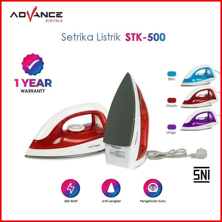 Setrika Listrik Advance Anti Lengket Stk-500 Hemat Listrik 350 Watt Garansi Resmi 1 Tahun