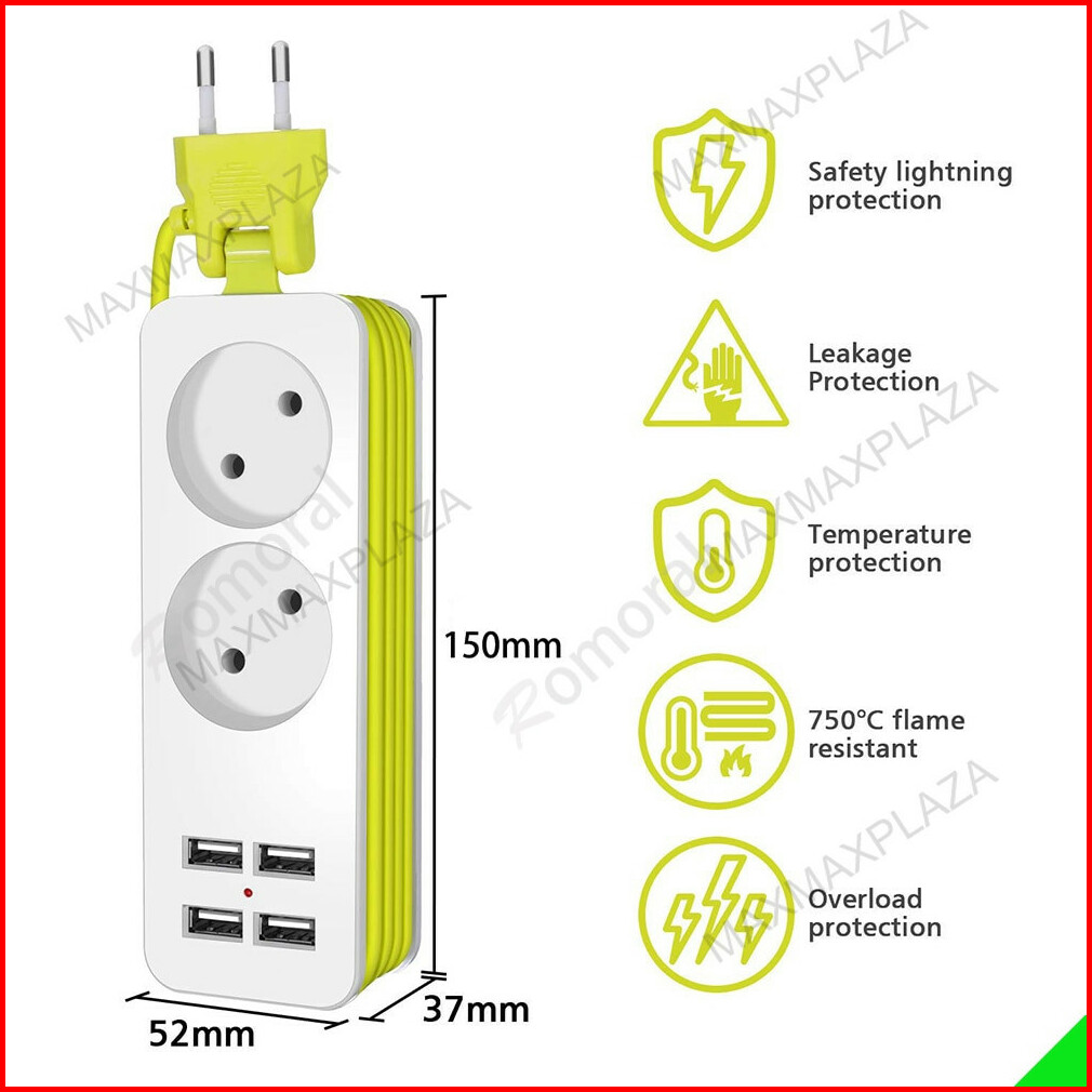 Top Kontak Traveling 2 Lubang Saklar 4 Port Usb Kepala Soket Steker Bercabang Dua Putaran Standar Eropa 2 Dengan Soket C