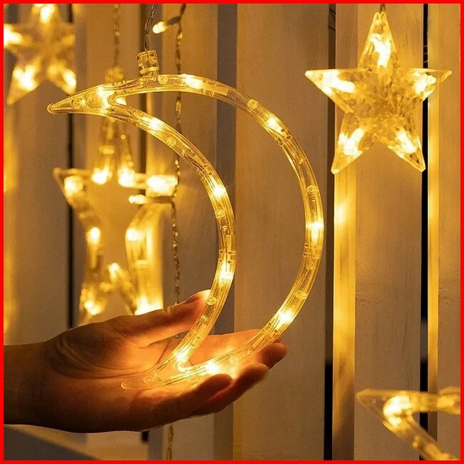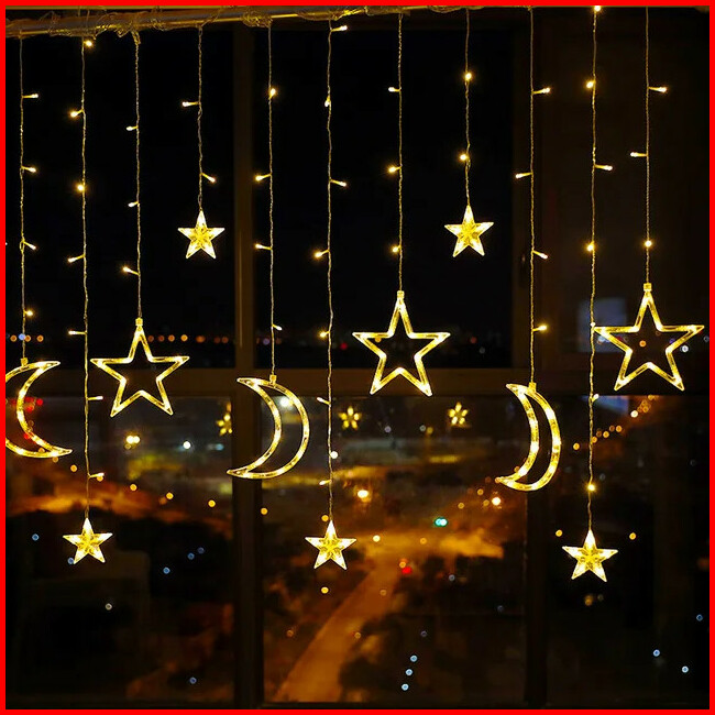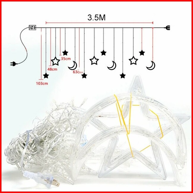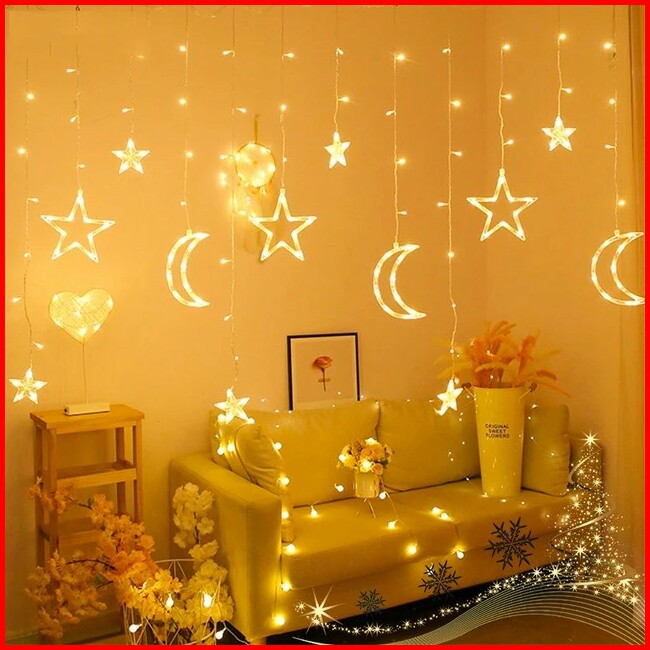 Lampu Tirai Lampu Hias Led Motif Bulan Bintang 3.5 Meter Lampu Tumblr