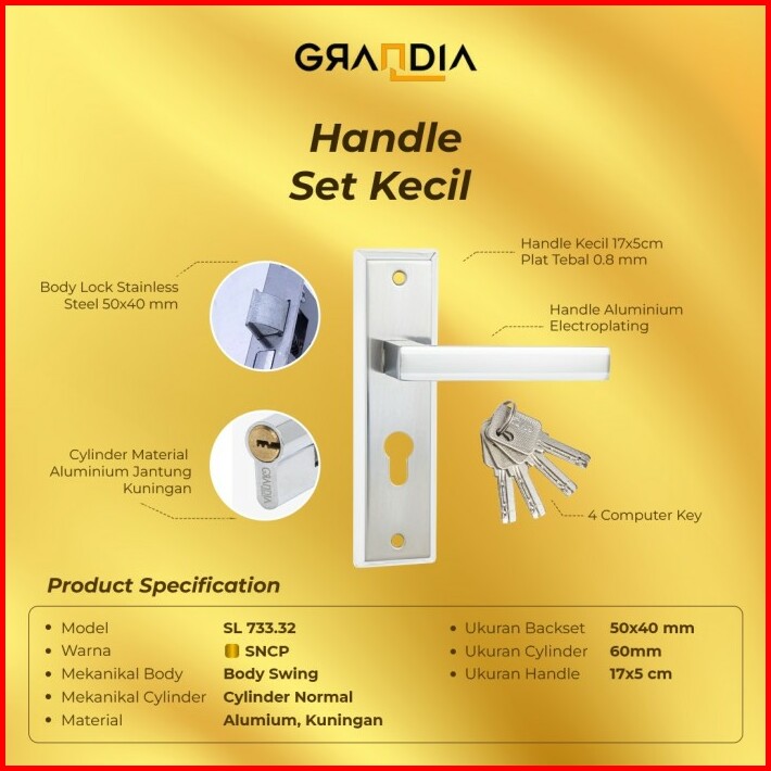 Gagang Pintu Set Kecil Handle Pintu Set Small Body Dan Cyl