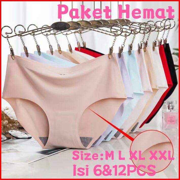 Paket Hemat 1 Lusin Celana Dalam Wanita Premium Quality Cd Seamless Halus Tanpa Jahitan Pkaian Dalam Grosir Silk Cuci Di
