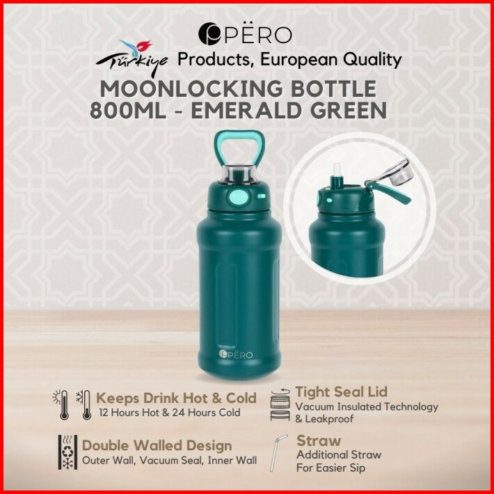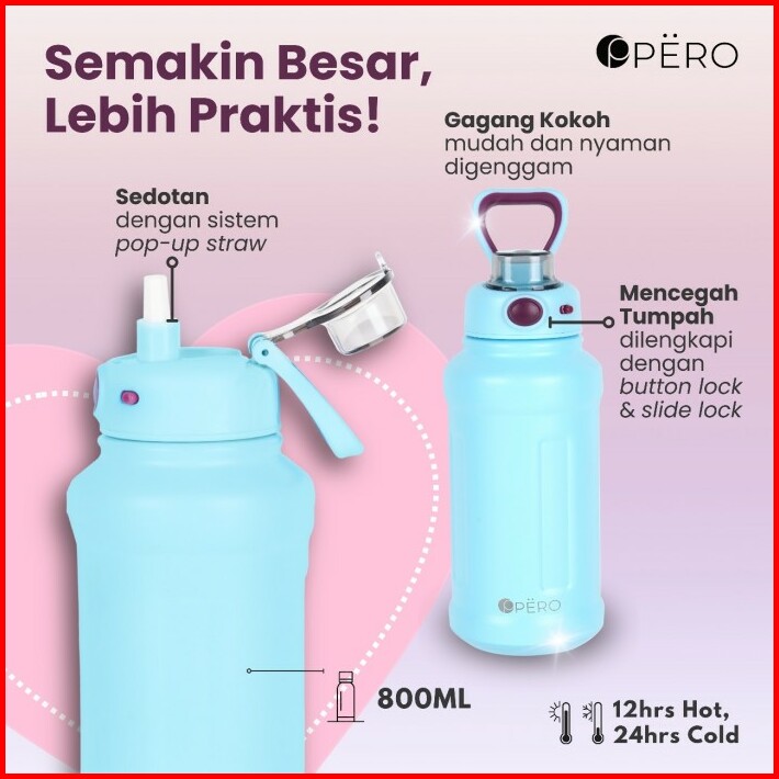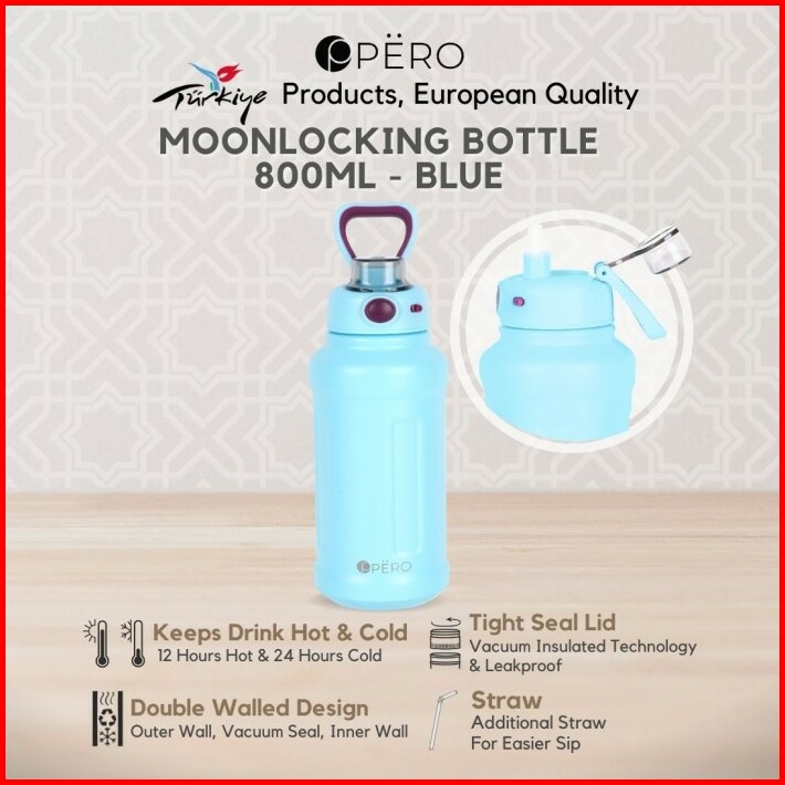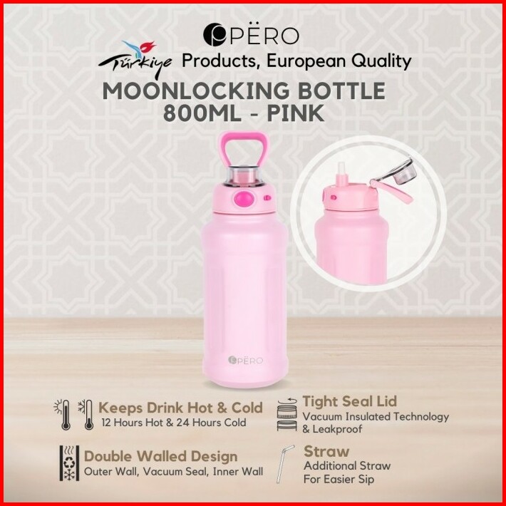 Pero Moon Locking Permos Bottle 800ml Leakproof Botol Minum Tumbler Vakum Dengan Sedotan Tahan Panas Dan Dingin Anti Tum