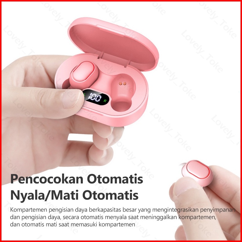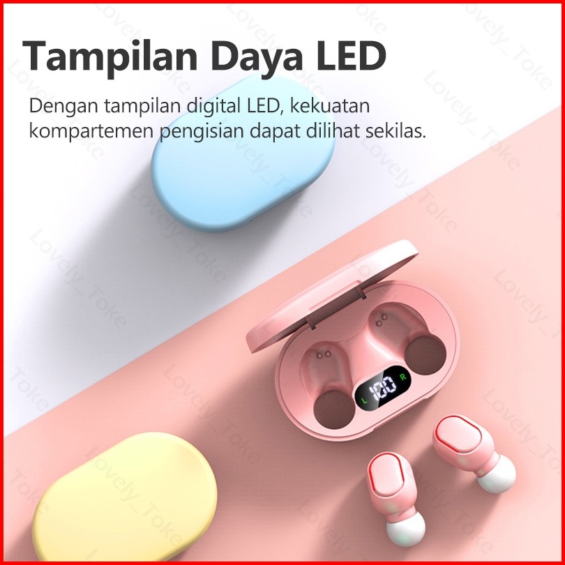 E7s Tws Earbuds Bluetooth Tampilan Led Macaron Airdots Earphone Bluetooth Hifi Stereo Smart Tombol Wireless Earphone Wit