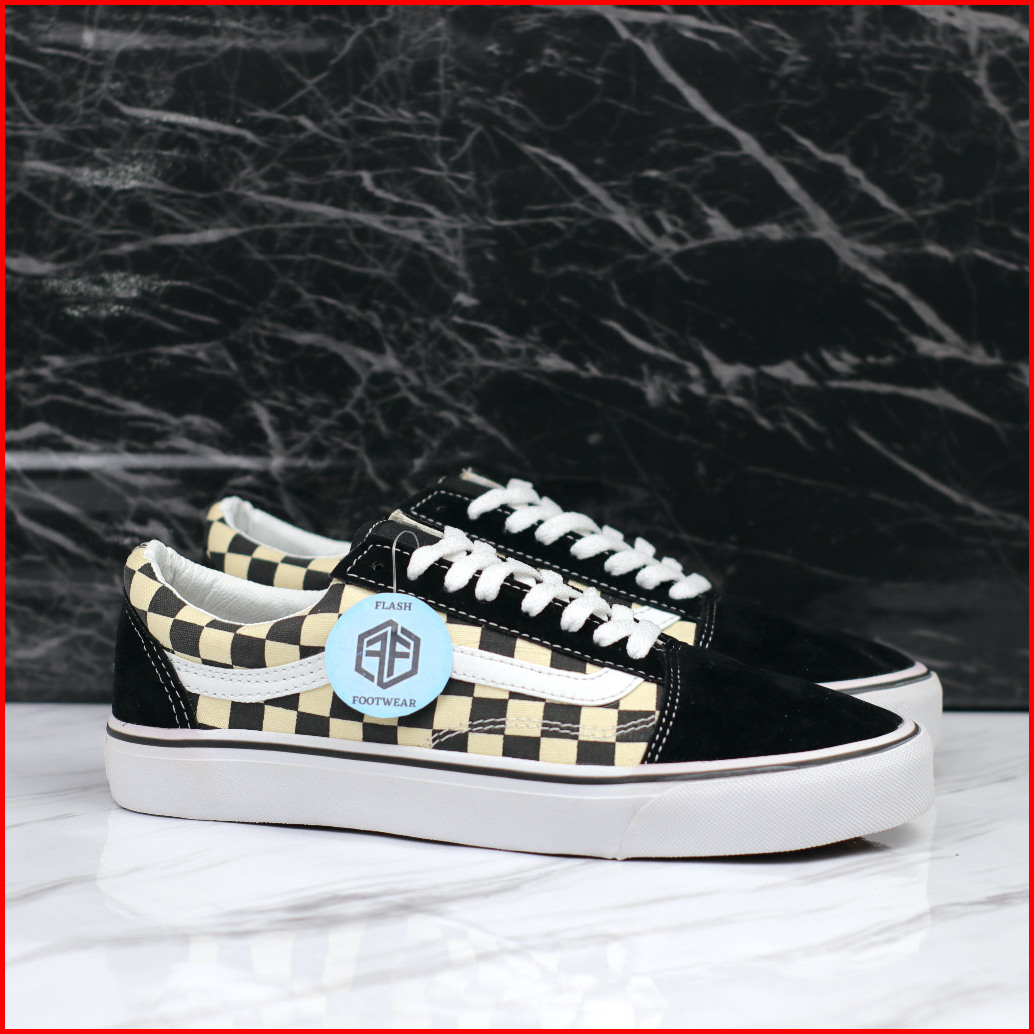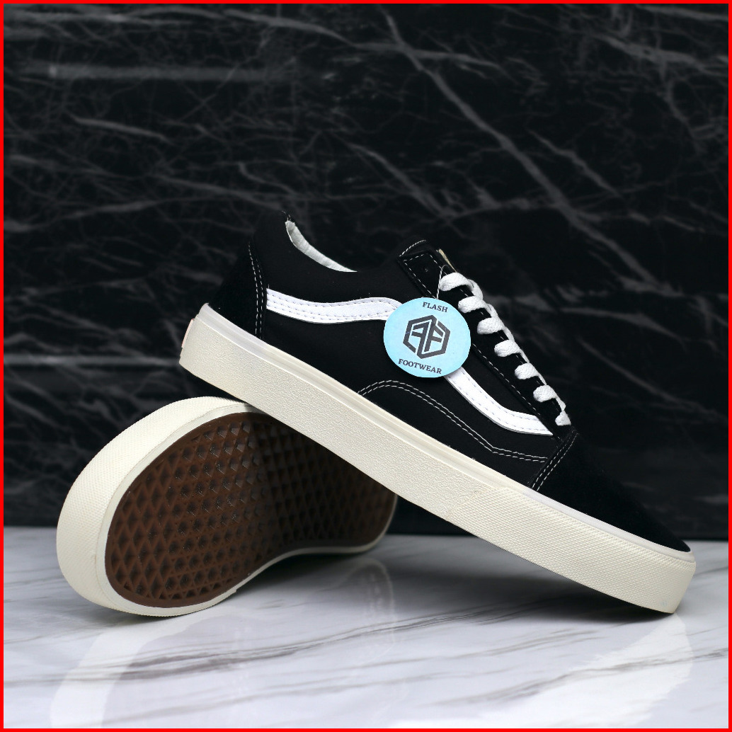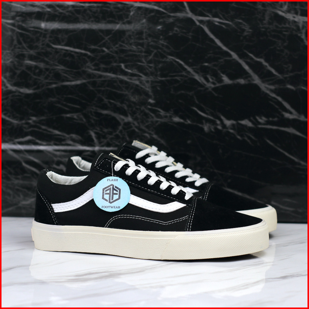 Sepatu Oldskool Hitam Putih Suede Kanvas Sneakers Old School Pria Wanita