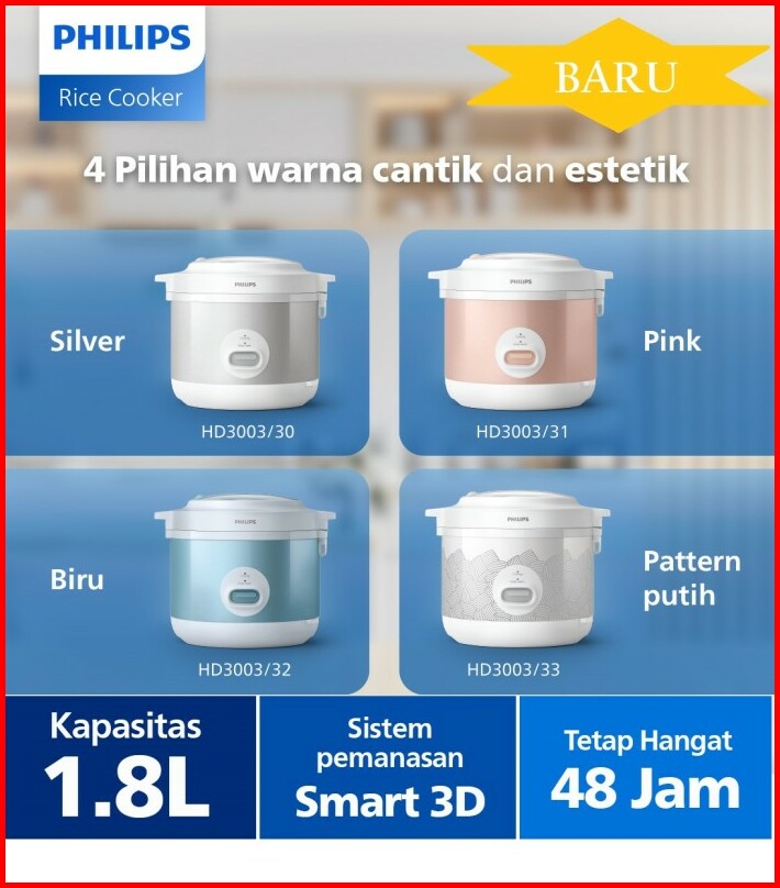 Philips Rice Cooker Hd-3003 1.8 Liter Hd3003 Hd 3003 Garansi Resmi