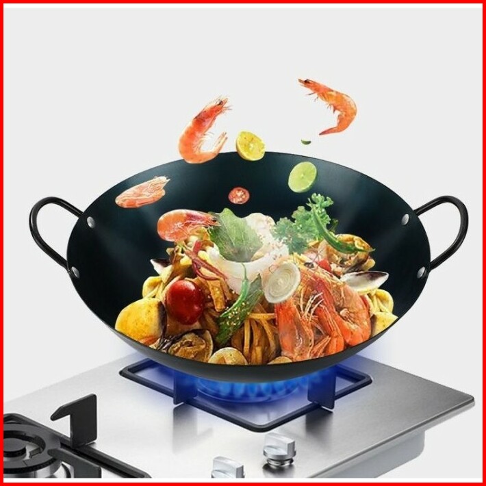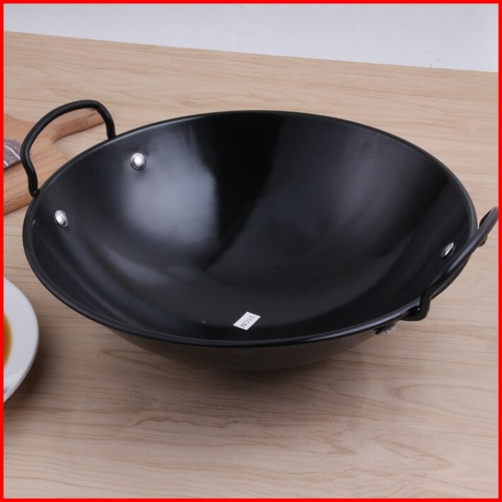 Kuali Wajan Hitam Anti Lengket Enamel Tebal Wok Penggorengan Hitam