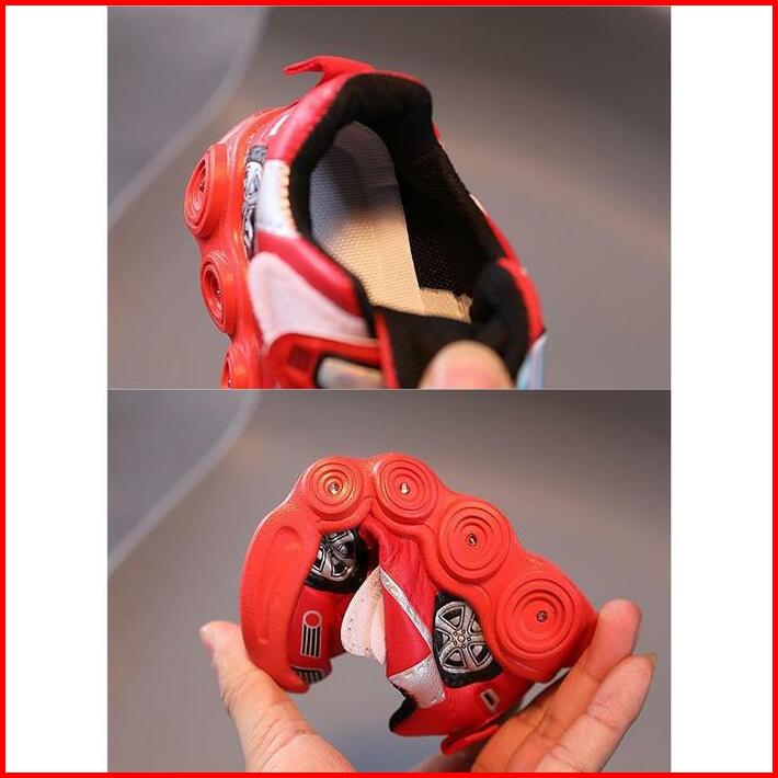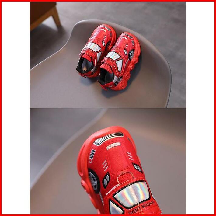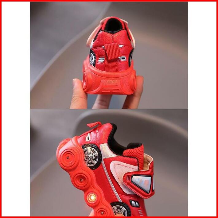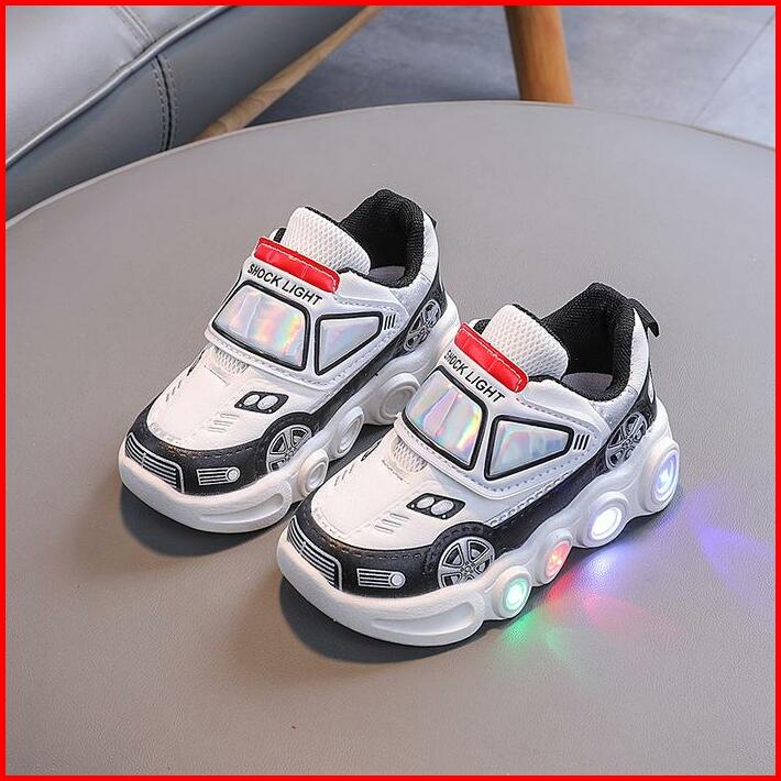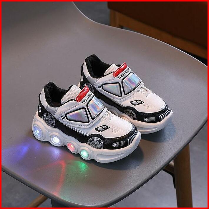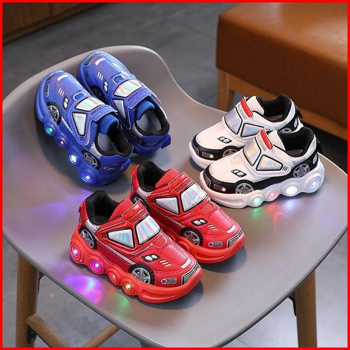Triclover 100 Keren Sepatu Lampu Led Anak Laki-laki Motif Mobil Sneaker Anak Led Sepatu Velcro Size 21-30