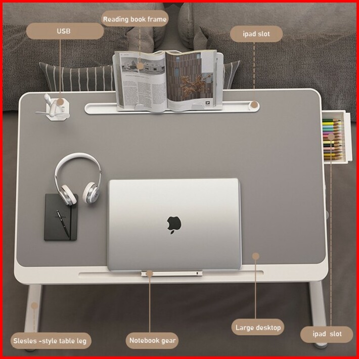 Meja Lipat Laptop Portable Desk Mini Belajar Foldable With Usb Port
