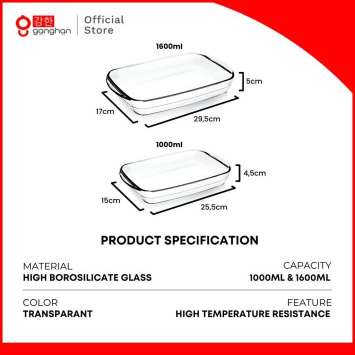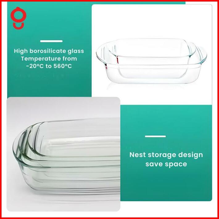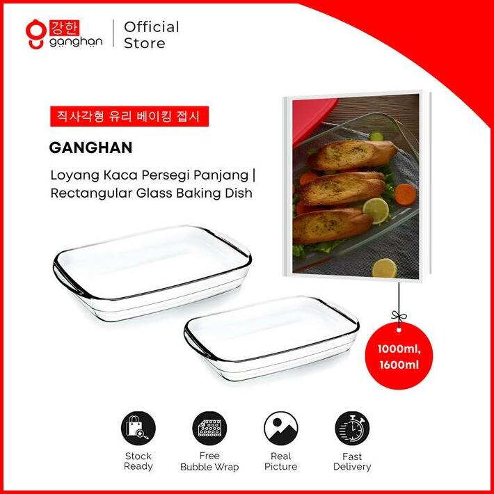 Ganghan Loyang Kaca Wadah Saji Persegi Panjang Rectangular Glass Baking Dish Serveware