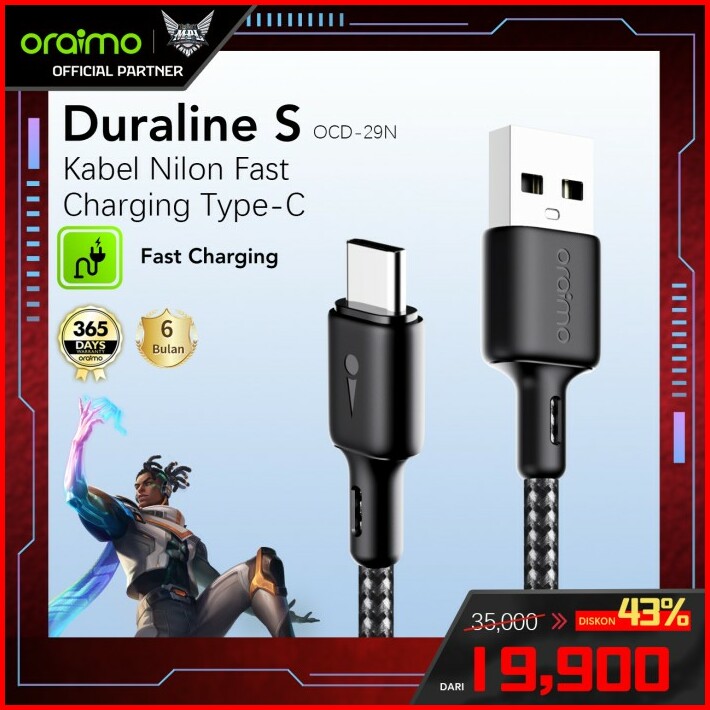 Oraimo Data Cable Fast Charging 5v 2.1a Kabel 1.5m Ocd-c29n M29n