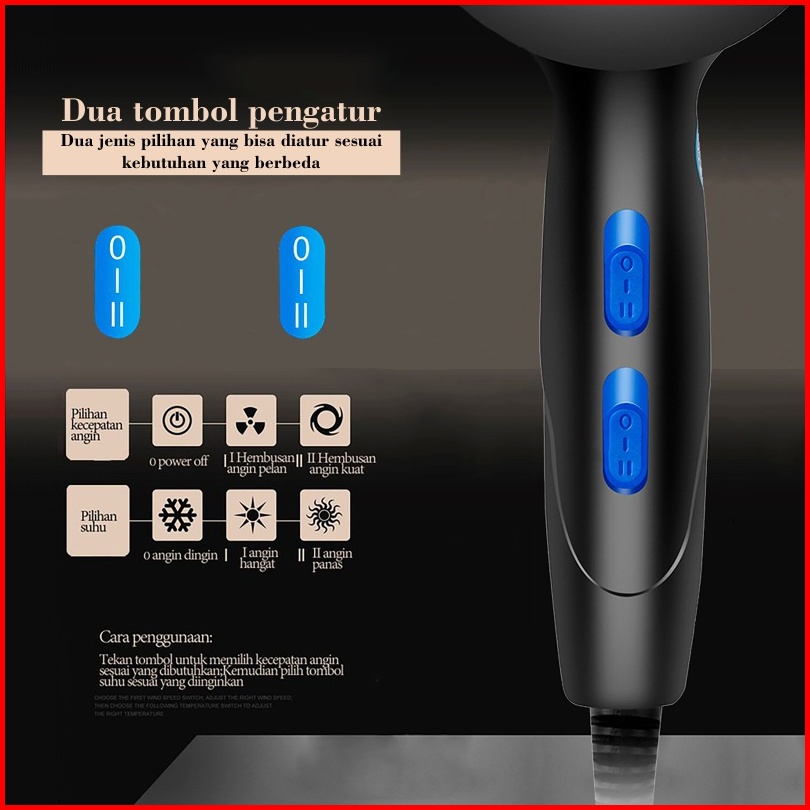 Alat Pengering Rambut Profesional Beauty Salon Haircare 750w Hair Dryer Hitam Pengering Rambut Multifungsi