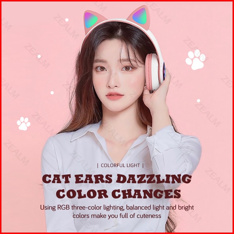 Stn-28 Lipat Led Cat Ear Bluetooth Headphone Dengan Mic Hifi Stereo Wireless Headphone Gaming Headset Cute Handset Bluet