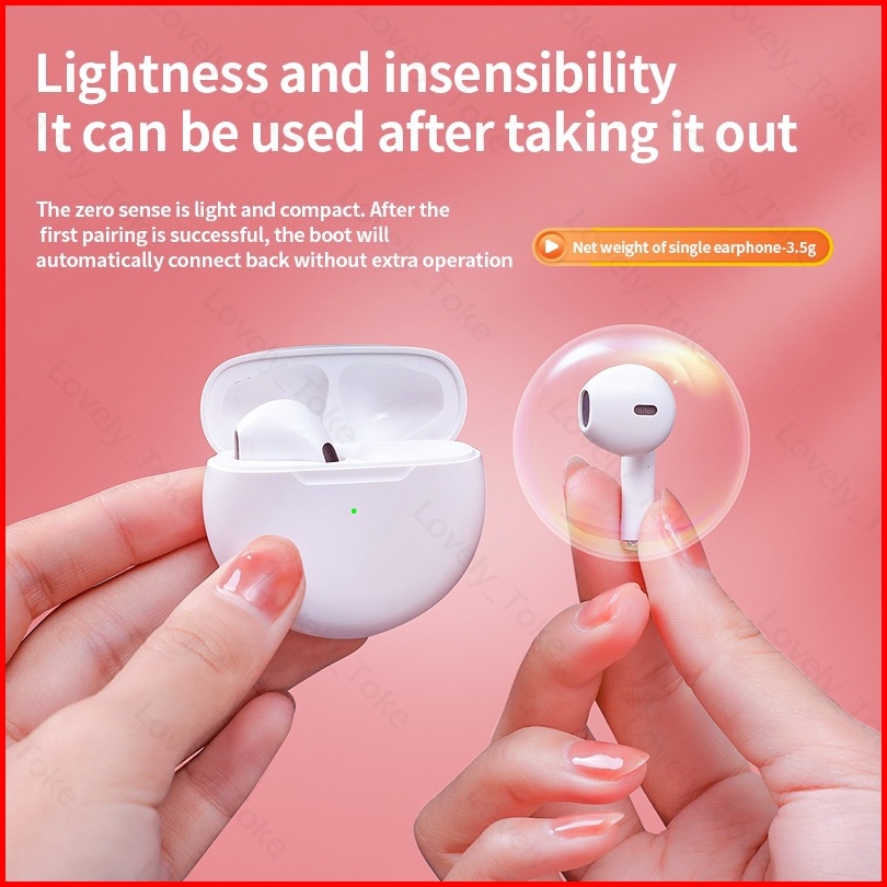 Pro 6 Headset Bluetooth Tws With Mic Support Call Sport Waterproof Earphone Bluetooth Henset Bloetooth Earbuds Hifi Ster