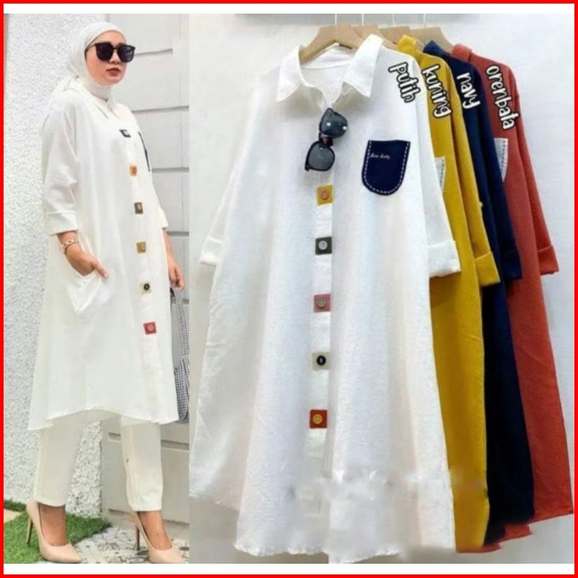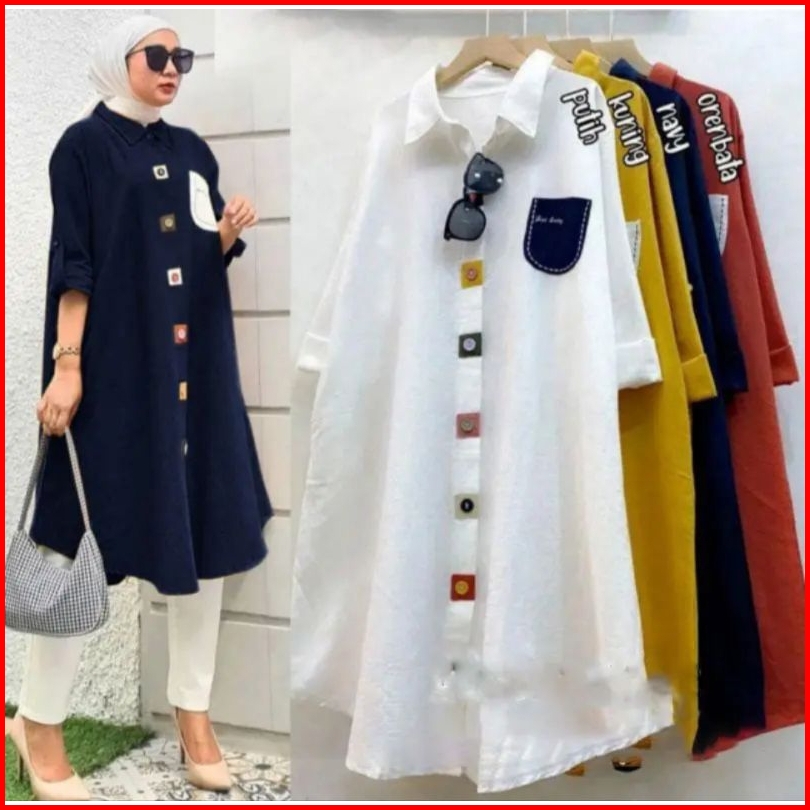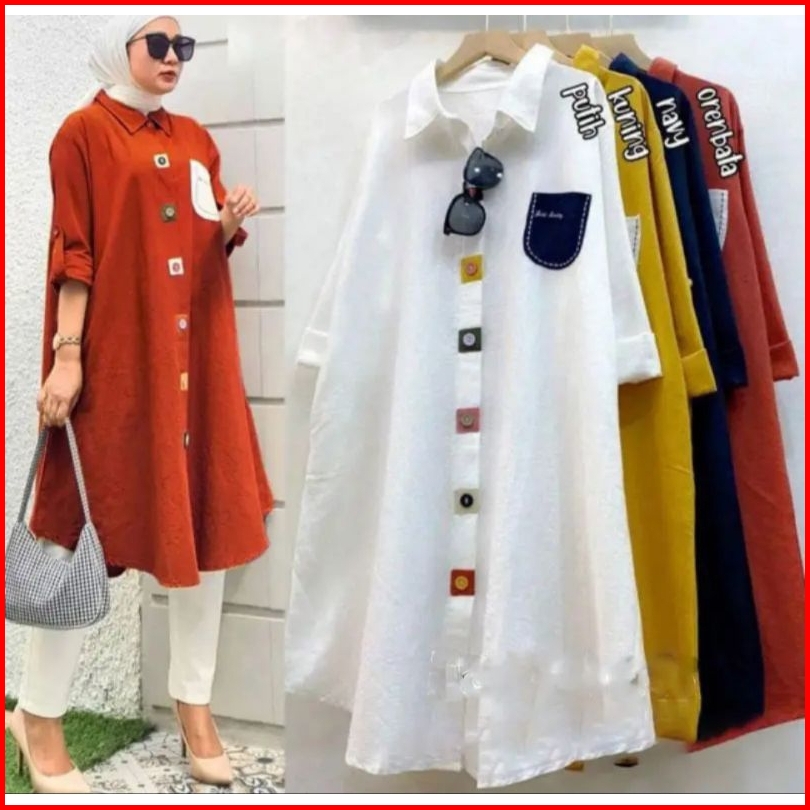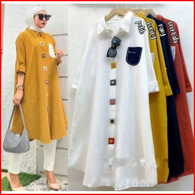 Cinta - Marbel Tunik Atasan Wanita Muslimah Atunik Katun Linen Ld 110 - 120cm Full Kancing Busui Friendly Baju Wanita Te